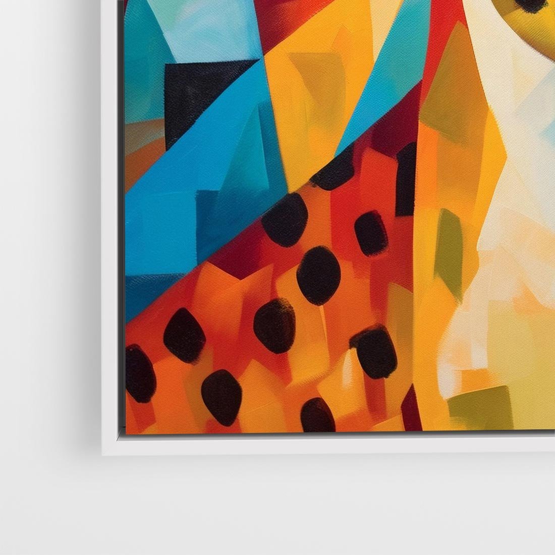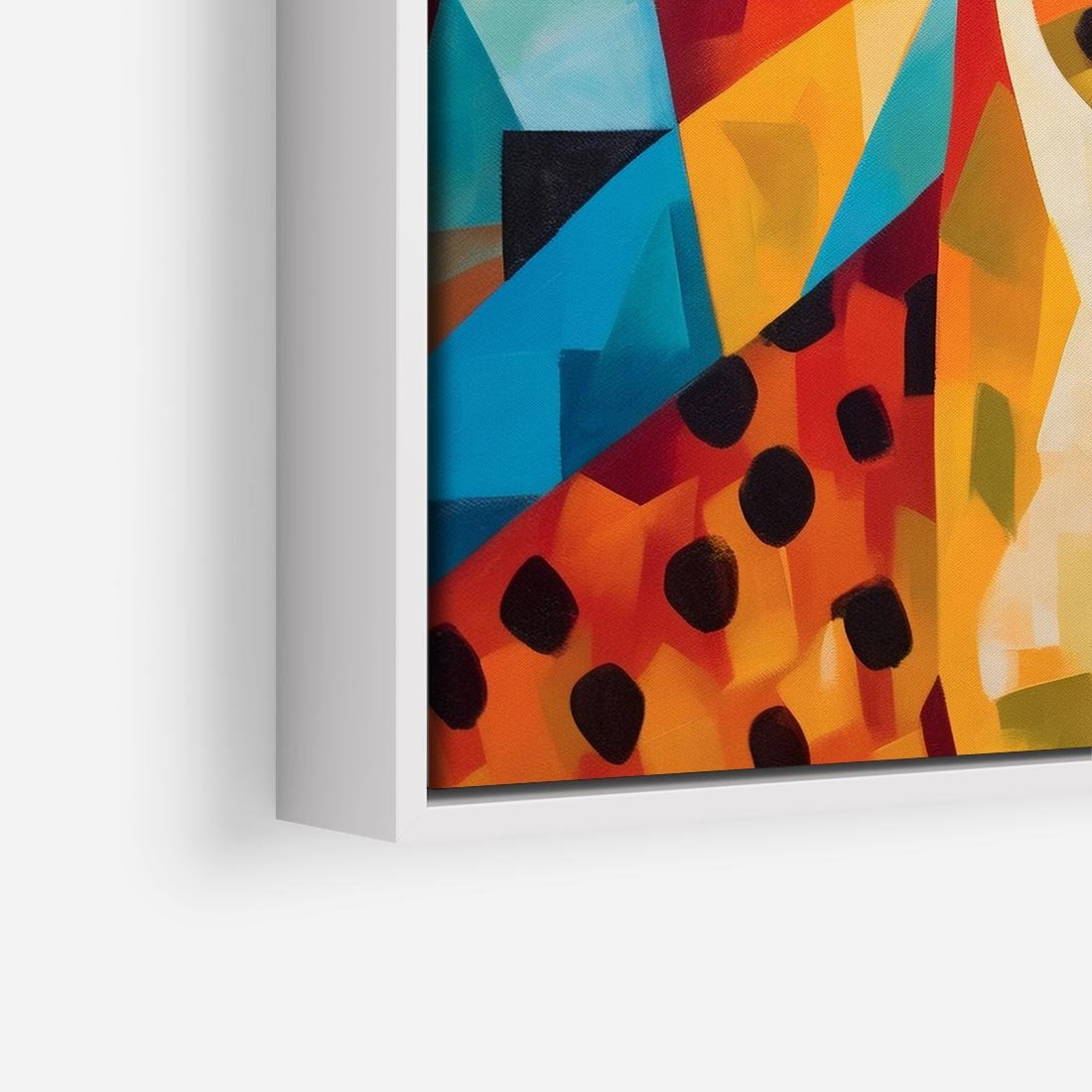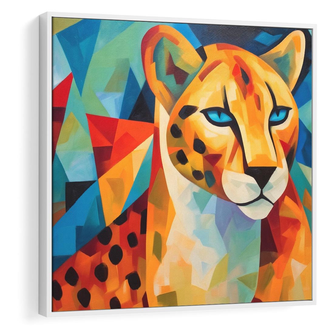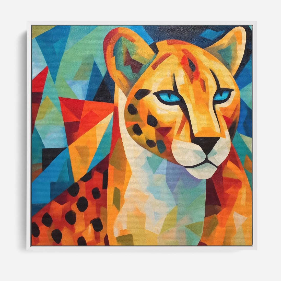 Obraz w ramie 80x80 - Dzikie Piękno - abstrakcyjny portret geparda, intensywne kolory - rama biała