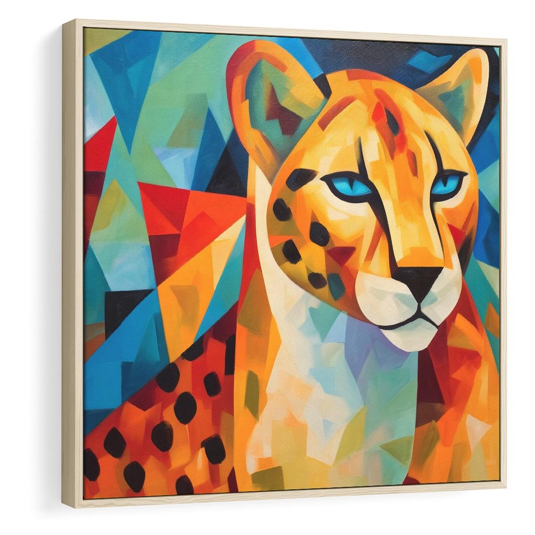 Obraz w ramie 80x80 - Dzikie Piękno - abstrakcyjny portret geparda, intensywne kolory - rama drewno