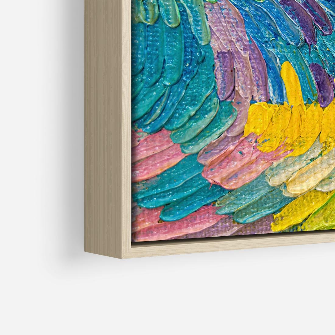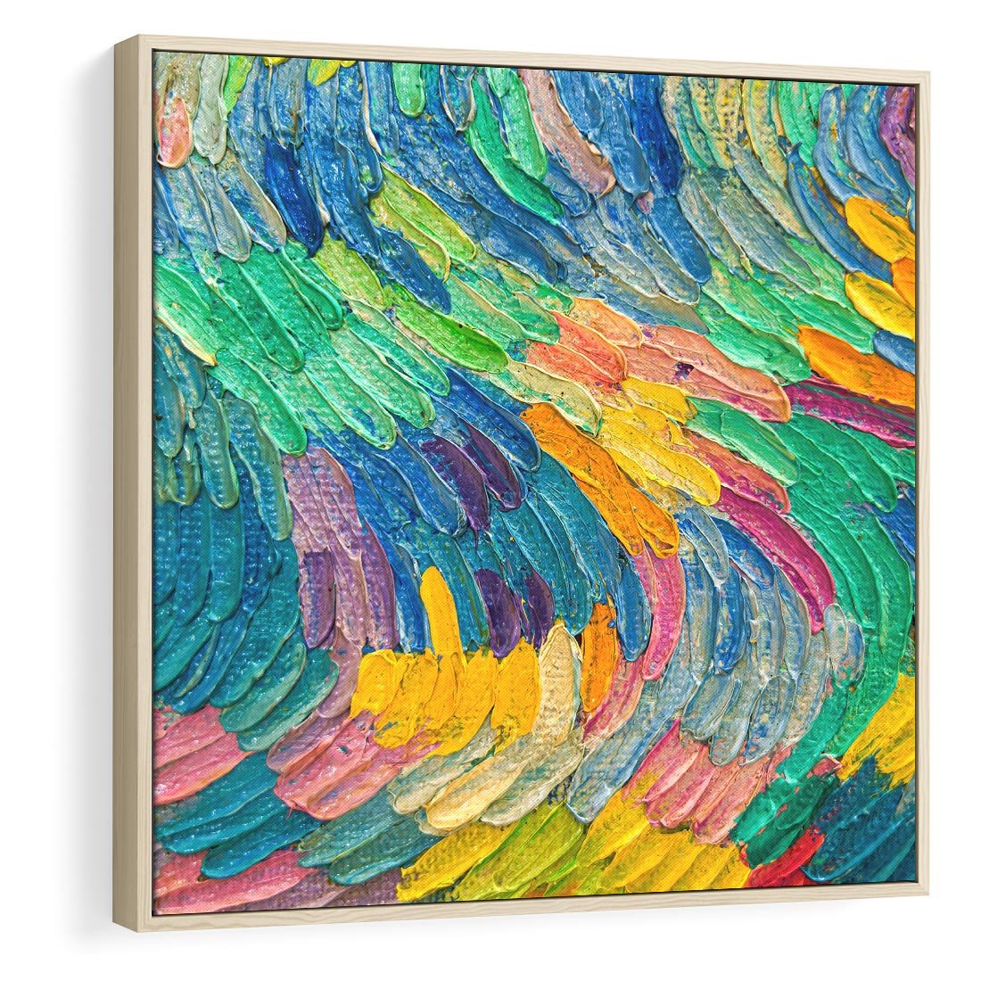 Obraz w ramie 80x80 - Egzotyczne Pióra - abstrakcyjne dzieło, farby olejne - rama drewno