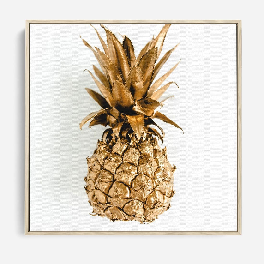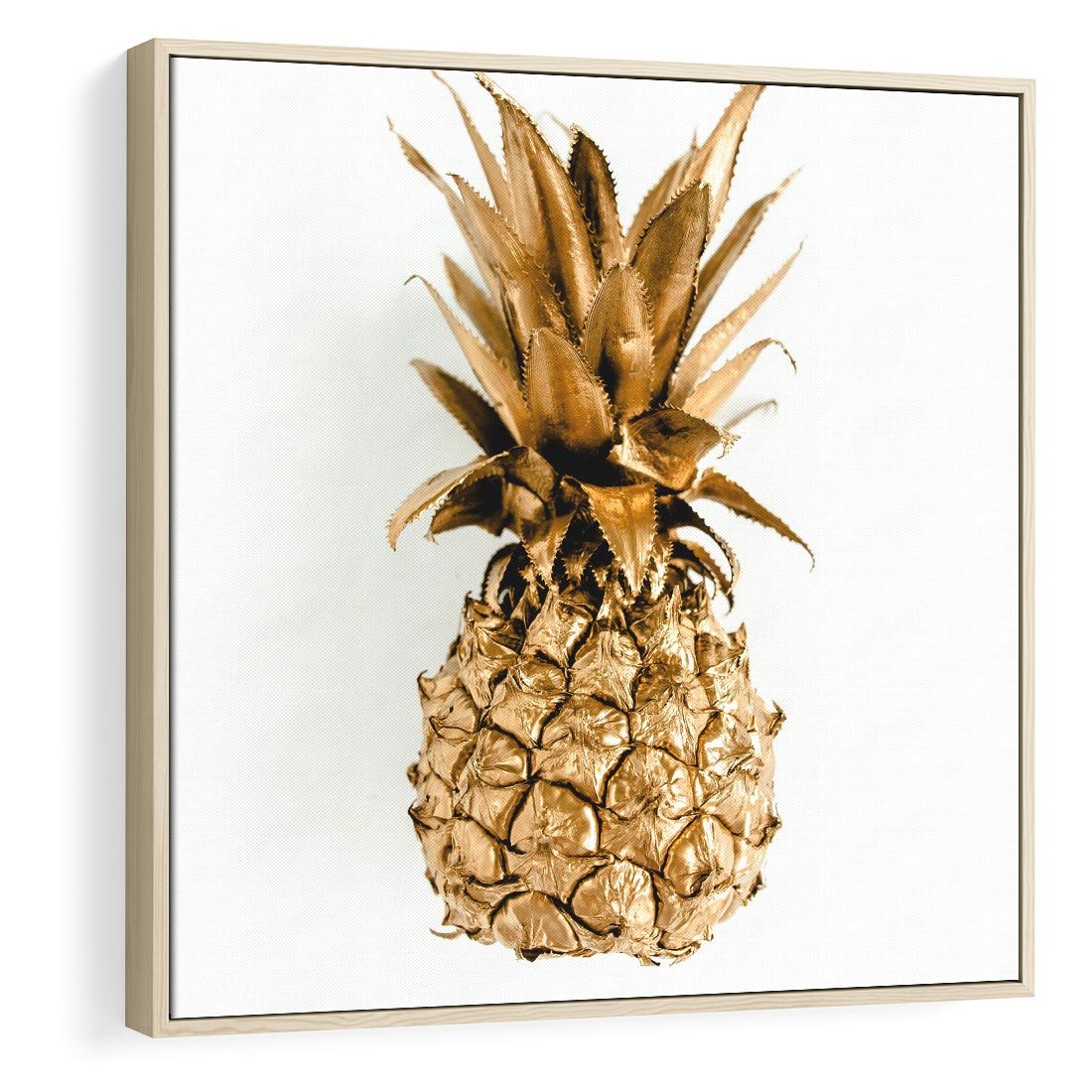 Obraz w ramie 80x80 - Ekskluzywny Akcent - złoty, ananas - rama drewno