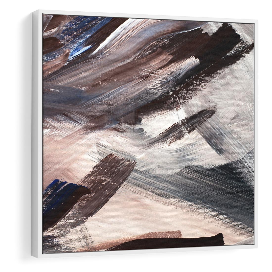 Obraz w ramie 80x80 - Eksploracja Dramaturgii - abstrakcyjny chaos, chatyczne maźnięcia pędzla - rama biała