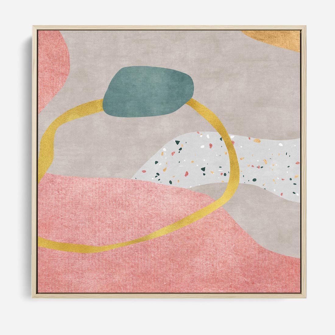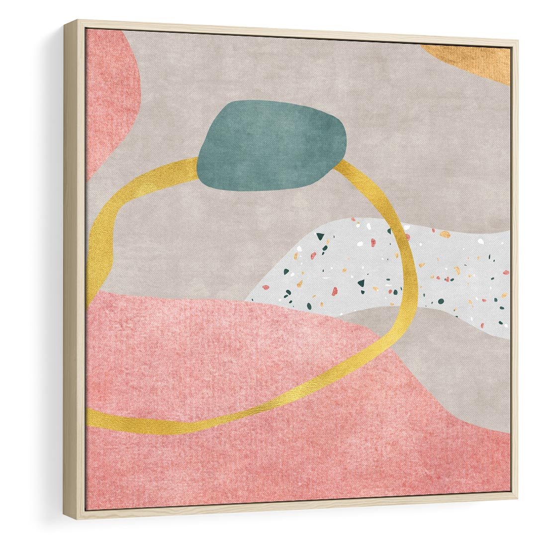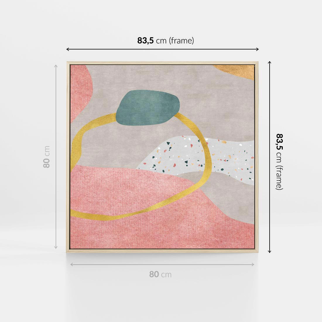 Odkryj fascynujący obraz abstrakcji, łączący kształty i dziwne formy, które harmonijnie współgrają z różnymi teksturami, przypominającymi lastryko. Złote akcenty subtelnie podkreślają różowy i szary kolor. To wyjątkowe dzieło stworzone dla miłośników sztuki poszukujących unikalnych kompozycji, które wzbudzą ciekawość i zachwyt. Doskonały dodatek do nowoczesnych i ekskluzywnych wnętrz.