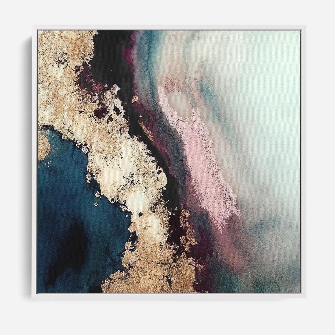 Obraz w ramie 80x80 - Elegancki Impuls - abstrakcyjne plamy, rozlana farba - rama biała
