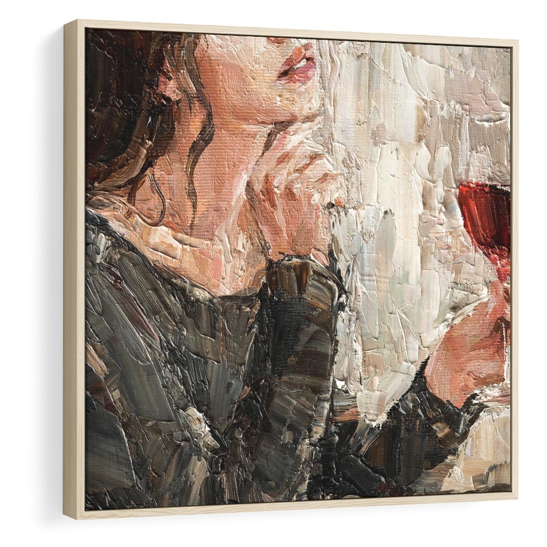 Obraz w ramie 80x80 - Esencja - kobieta wino obraz impresonizm olej na płótnie - rama drewno