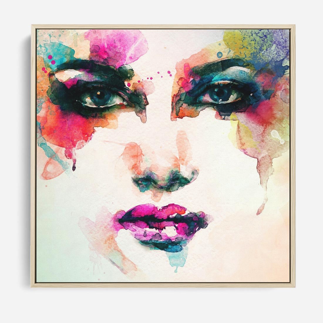 Obraz w ramie 80x80 - Eteryczna Głębia Dusz - portret twarz kobiety, wyraziste oczy - rama drewno