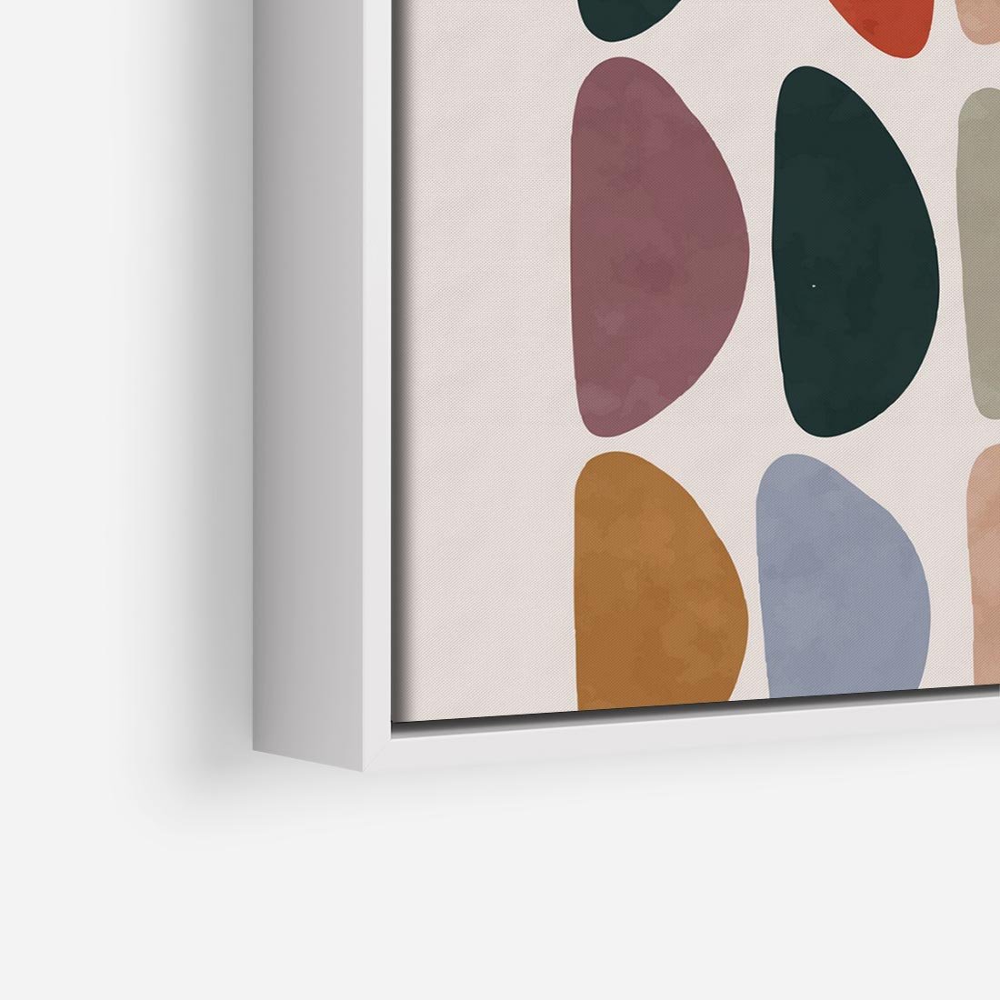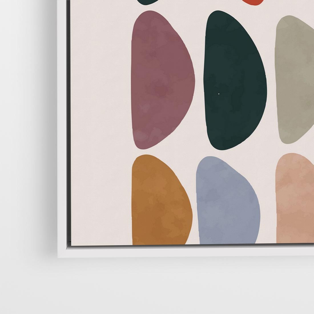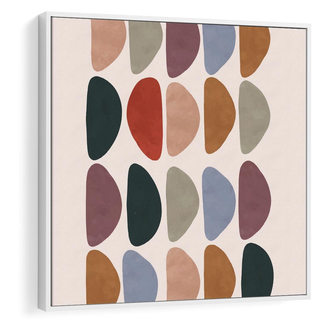 Ten abstrakcyjny obraz prezentuje geometryczną kompozycję w stylu boho. Kształty i linie tworzą harmonijną równowagę, a delikatne odcienie kolorów dodają mu charakterystycznego uroku. To idealny plakat, który wprowadzi subtelność i wyjątkowość do każdego wnętrza.