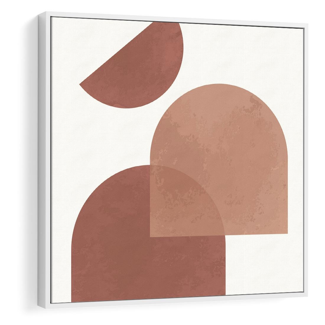 Obraz w ramie 80x80 - Harmonijne Widoki - abstrakcyjne geometryczne kształty, odcienie brązu i beżu - rama biała