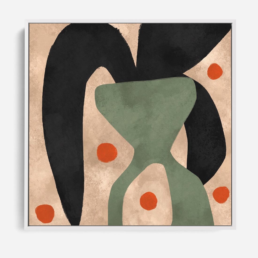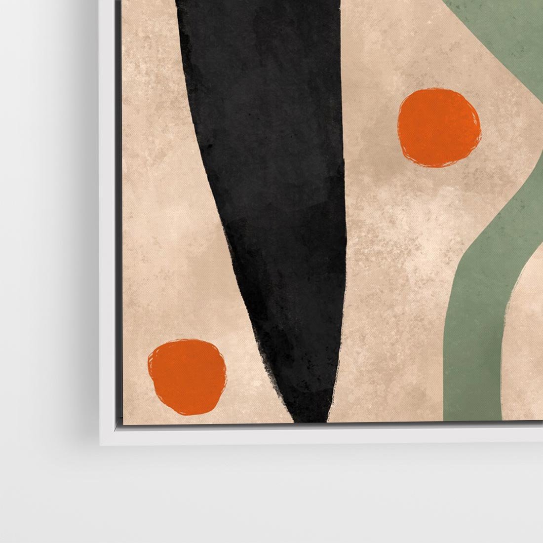Ten abstrakcyjny obraz-plakat prezentuje dziwne i intrygujące kształty na delikatnym beżowym tle, wprowadzając do wnętrza charakterystyczny boho klimat.