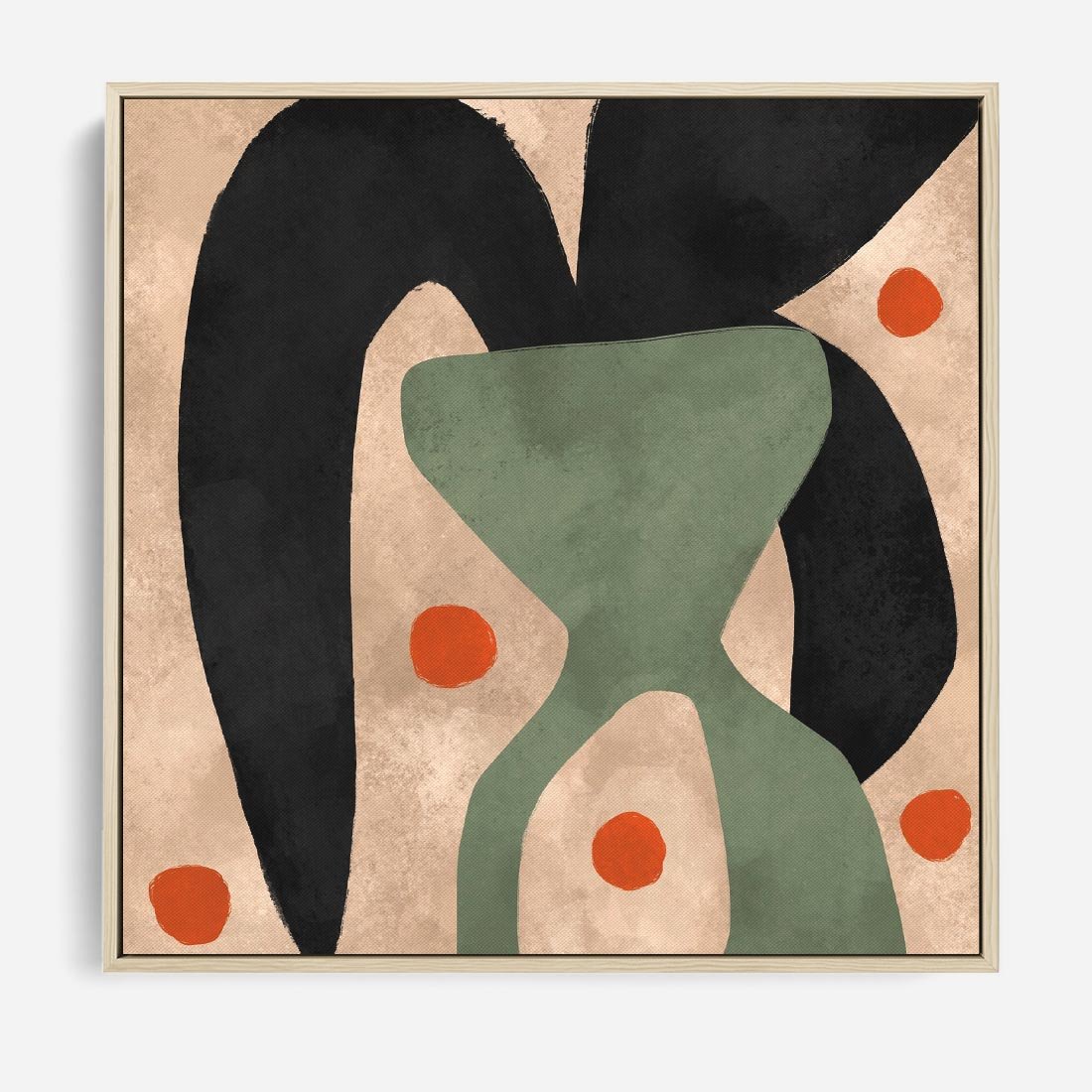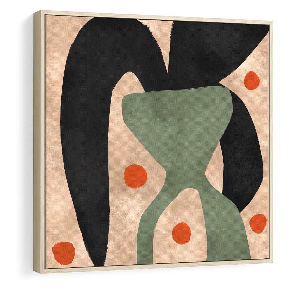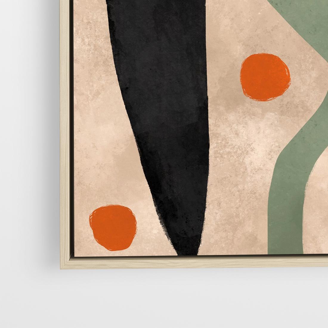 Ten abstrakcyjny obraz-plakat prezentuje dziwne i intrygujące kształty na delikatnym beżowym tle, wprowadzając do wnętrza charakterystyczny boho klimat.