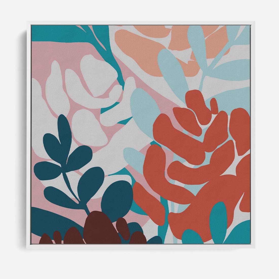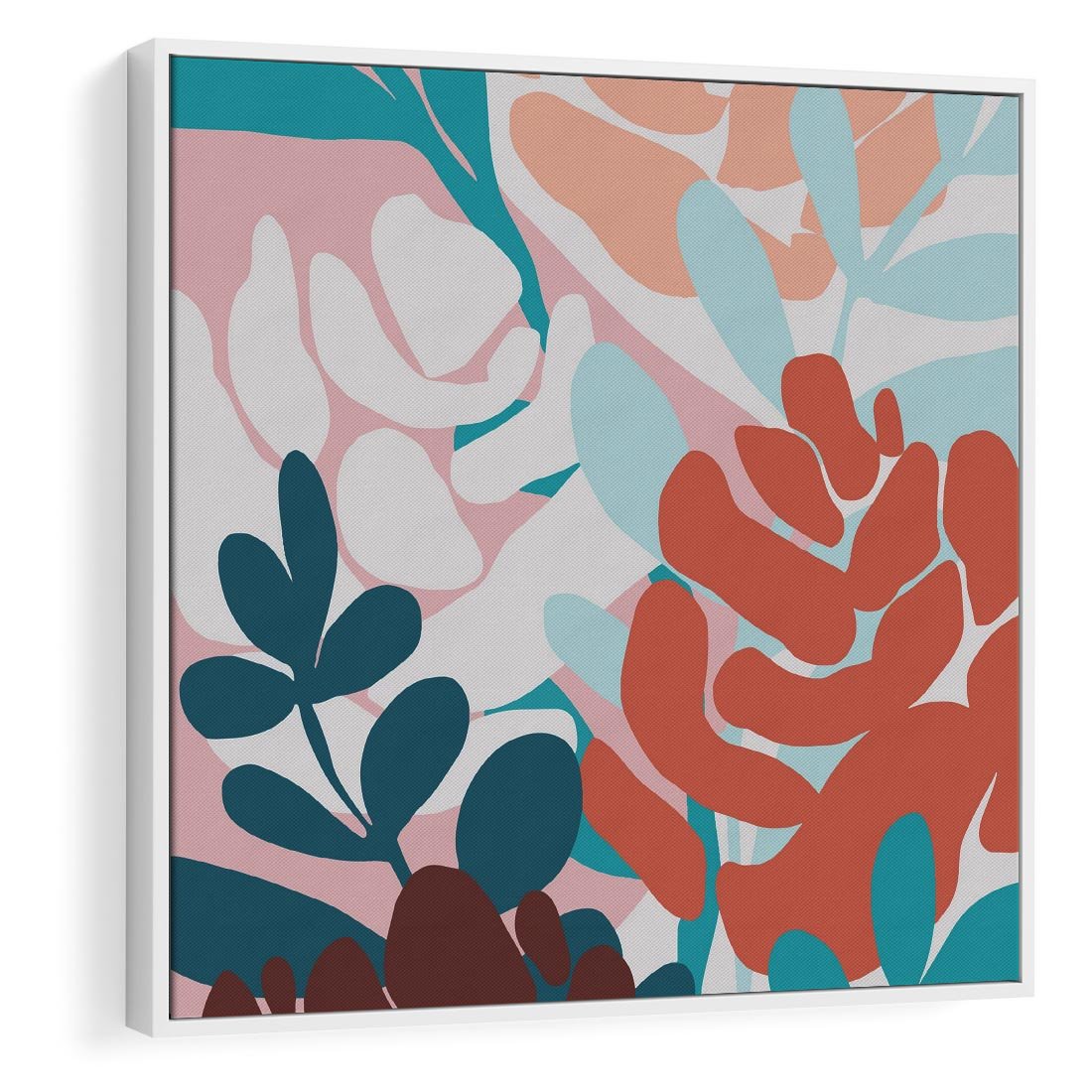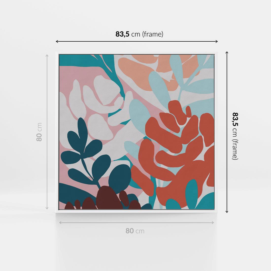 Obraz w ramie 80x80 - Impresje Kształtów - abstrakcyjna kompozycja kwiatowych form, kolor zgaszone - rama biała