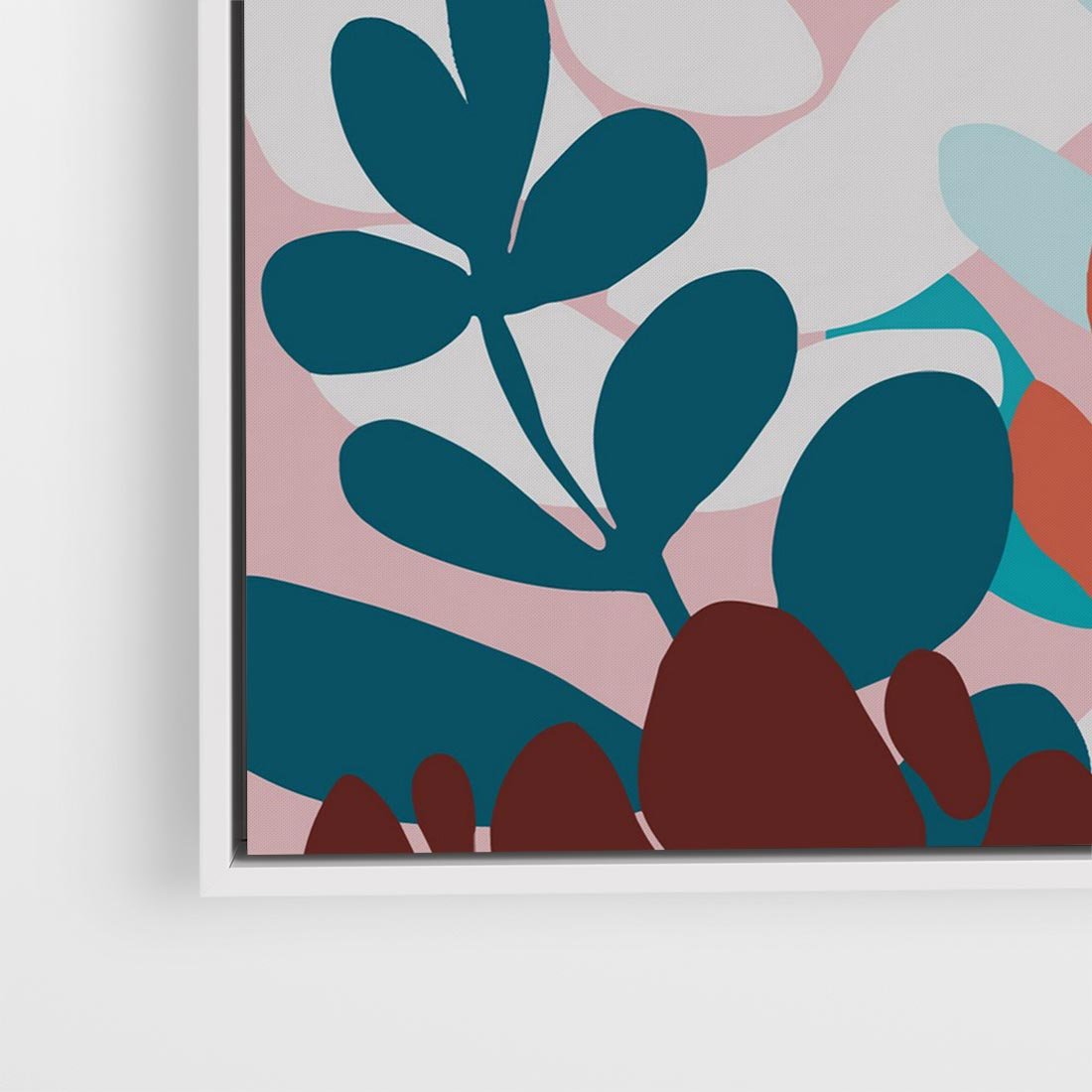 Abstrakcyjna kompozycja kwiatowych form ukazuje delikatne piękno natury w nowoczesny sposób. Zgaszone kolory dodają subtelności i tajemniczości, tworząc harmonijną i elegancką sztukę, która zachwyca swoją unikalną interpretacją.