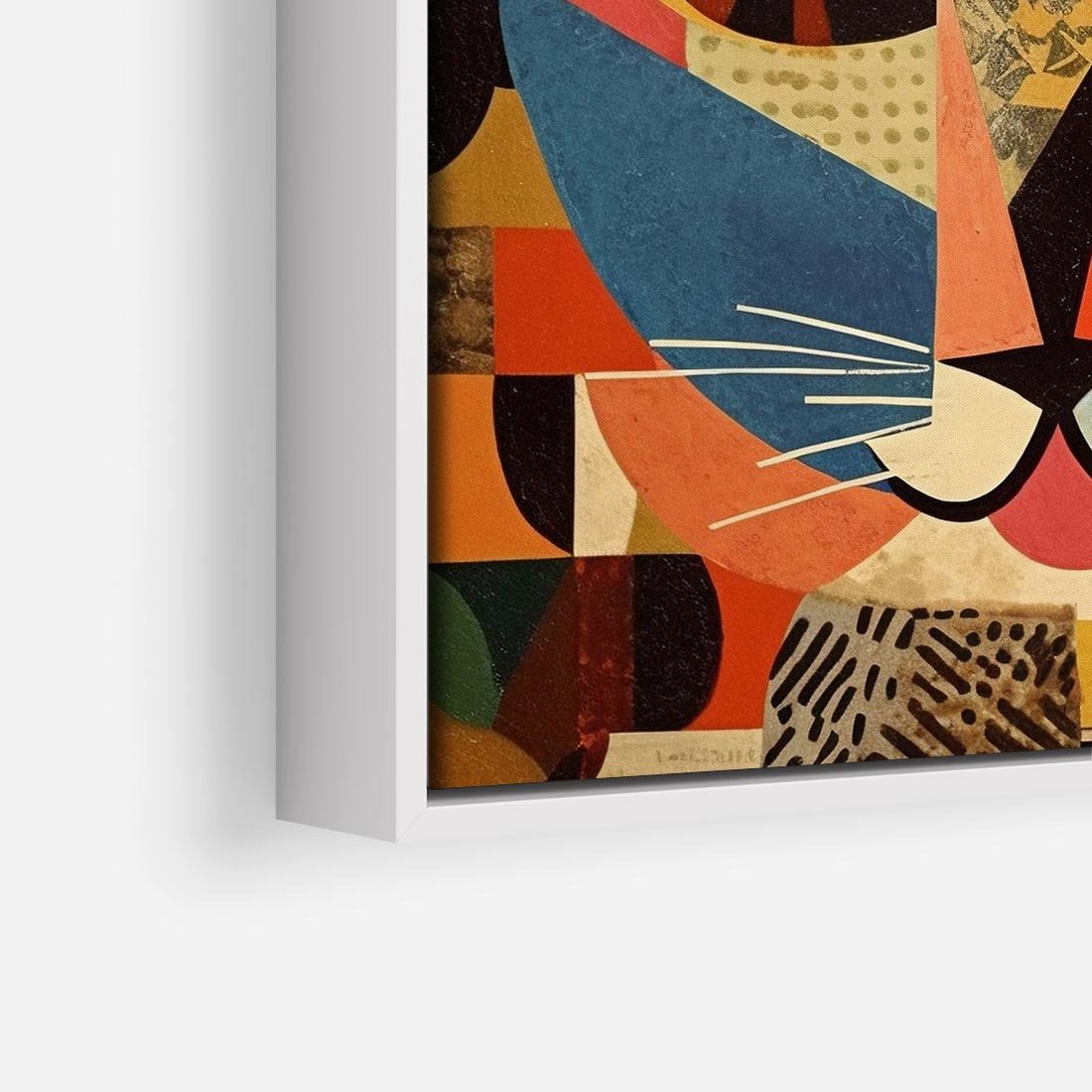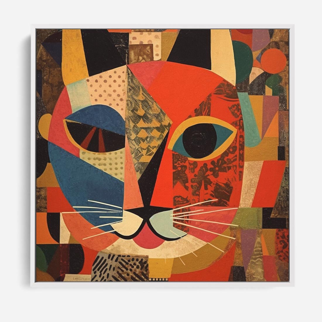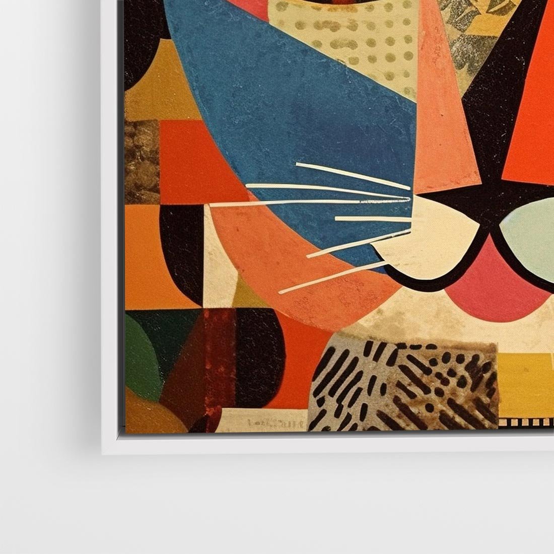 Ten abstrakcyjny obraz olejny przedstawia kota w stylu przypominającym dzieła Picassa. Kontrast pomiędzy kocim profilem a ciemnym tłem tworzy intrygującą atmosferę, oddającą niekonwencjonalne piękno zwierzęcia.