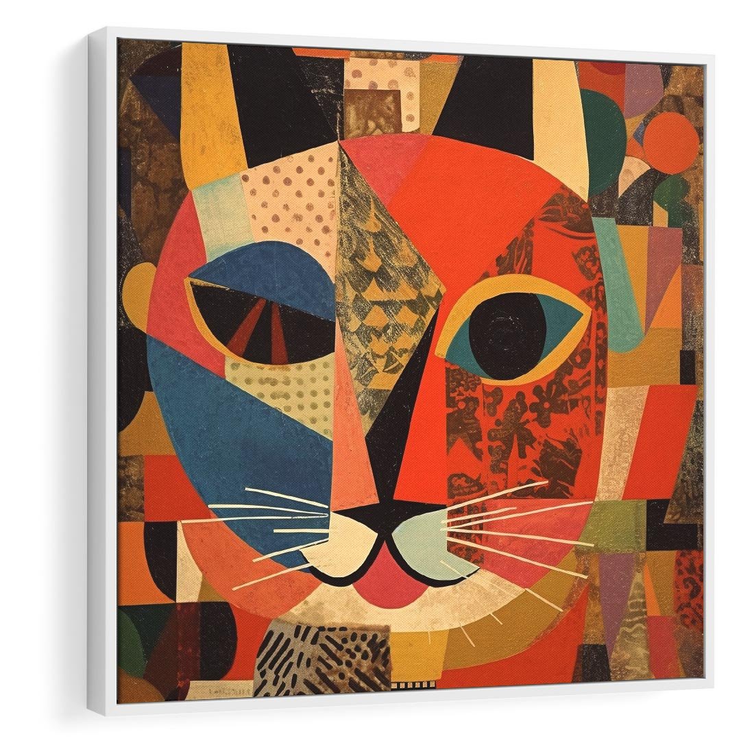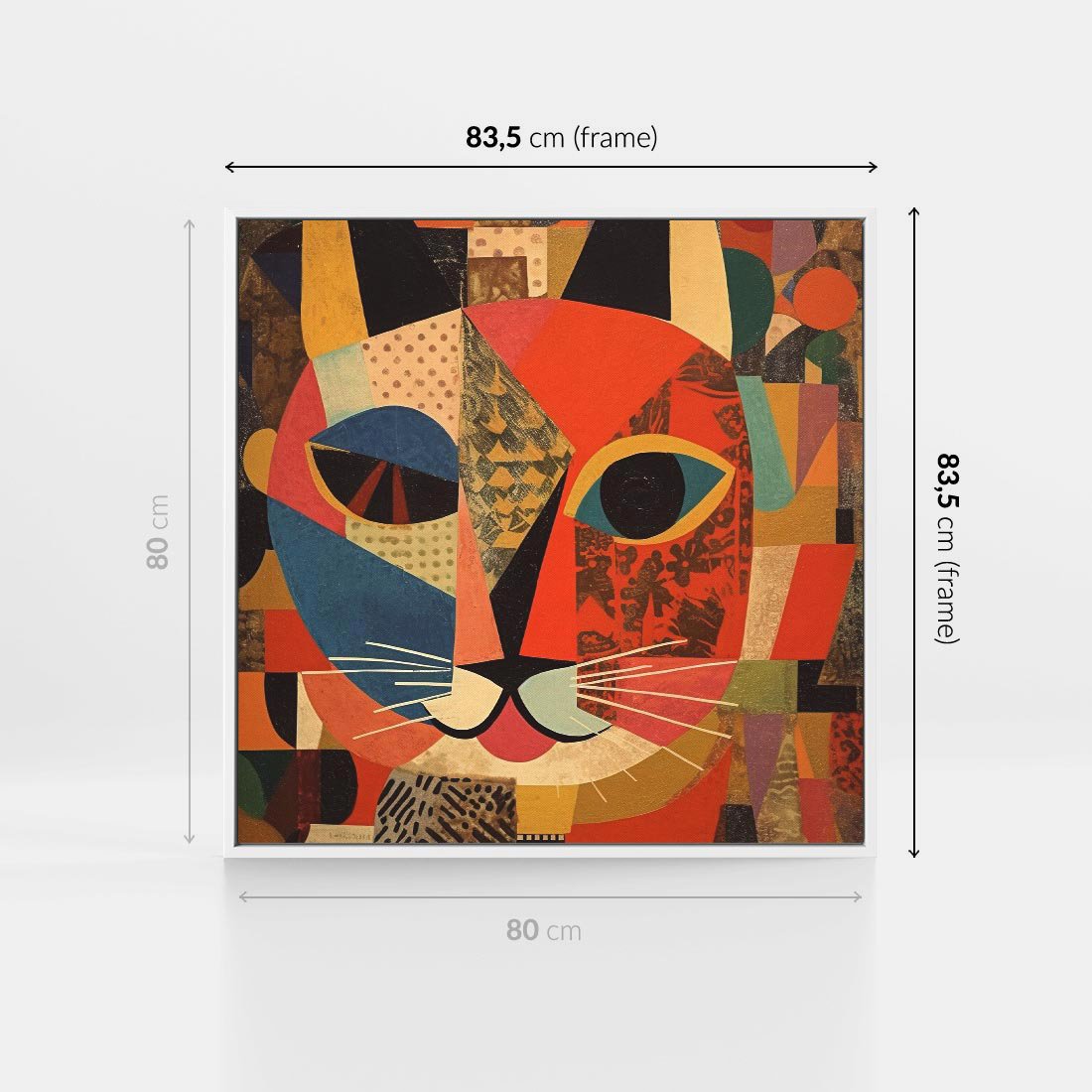 Obraz w ramie 80x80 - Impresje Nieznanych Odniesień - abstrakcyjny obraz olejny, kot - rama biała