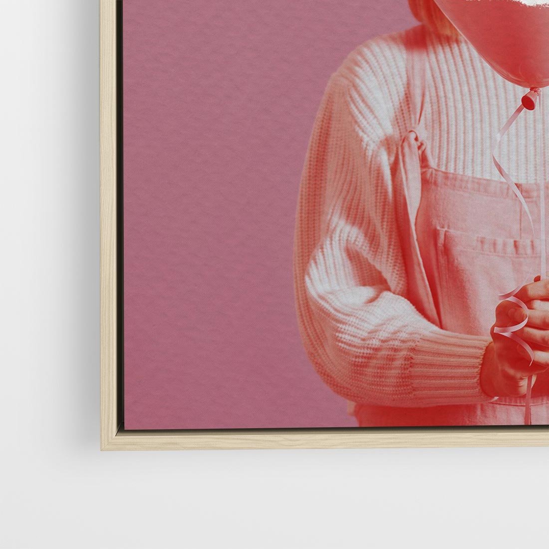 Ten abstrakcyjny kolaż z elementami stylu retro prezentuje dziewczynkę, której głowa zasłonięta jest różowym balonem. Przenosi nas w magiczny świat wyobraźni, gdzie rozdarta kartka nadaje niezwykłego charakteru i zahacza o tematykę snów i pragnień.
