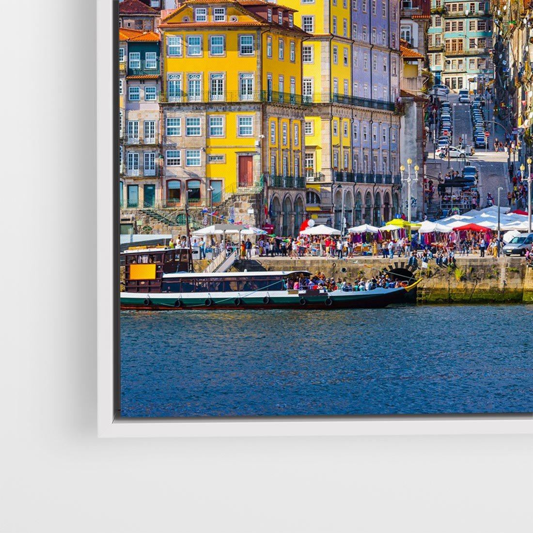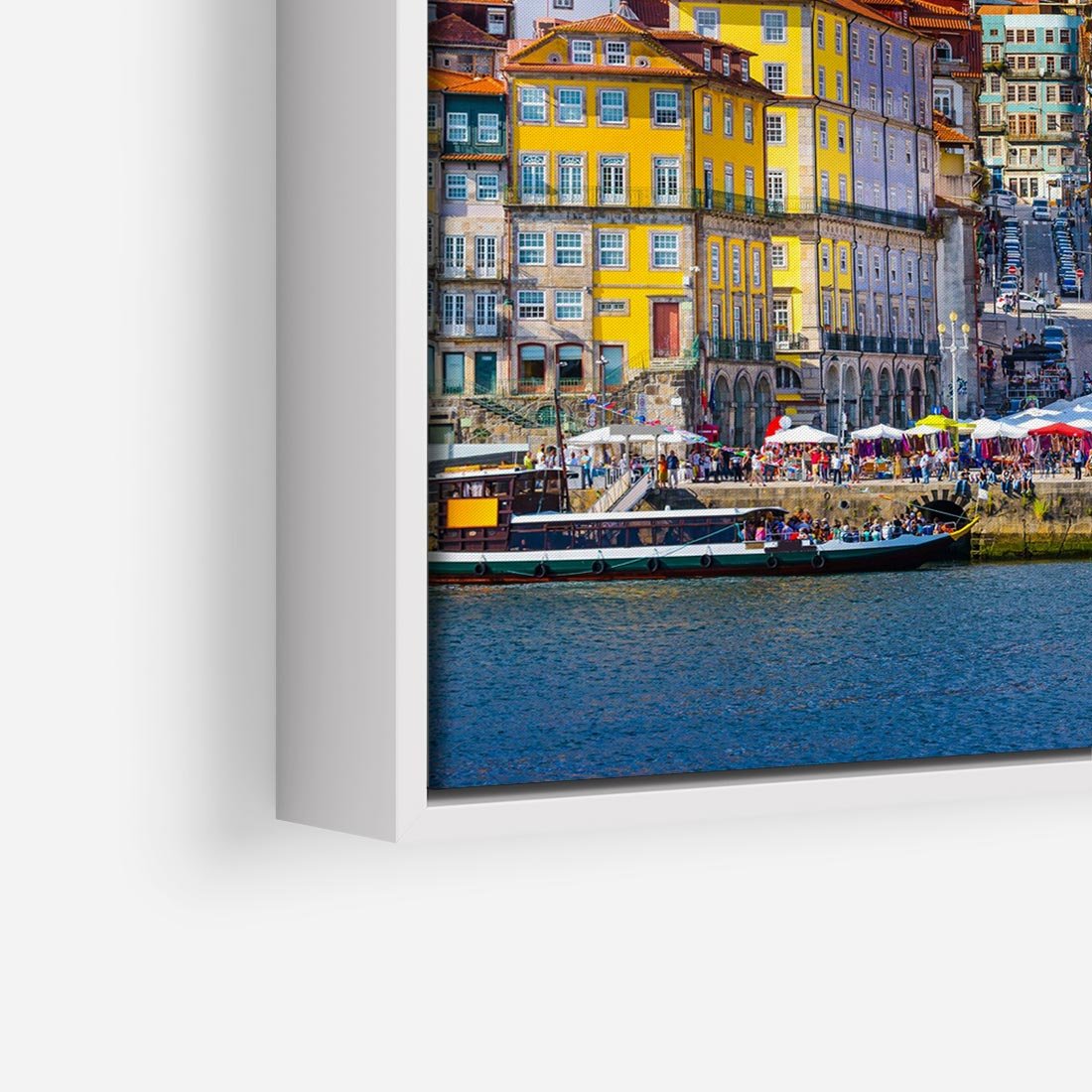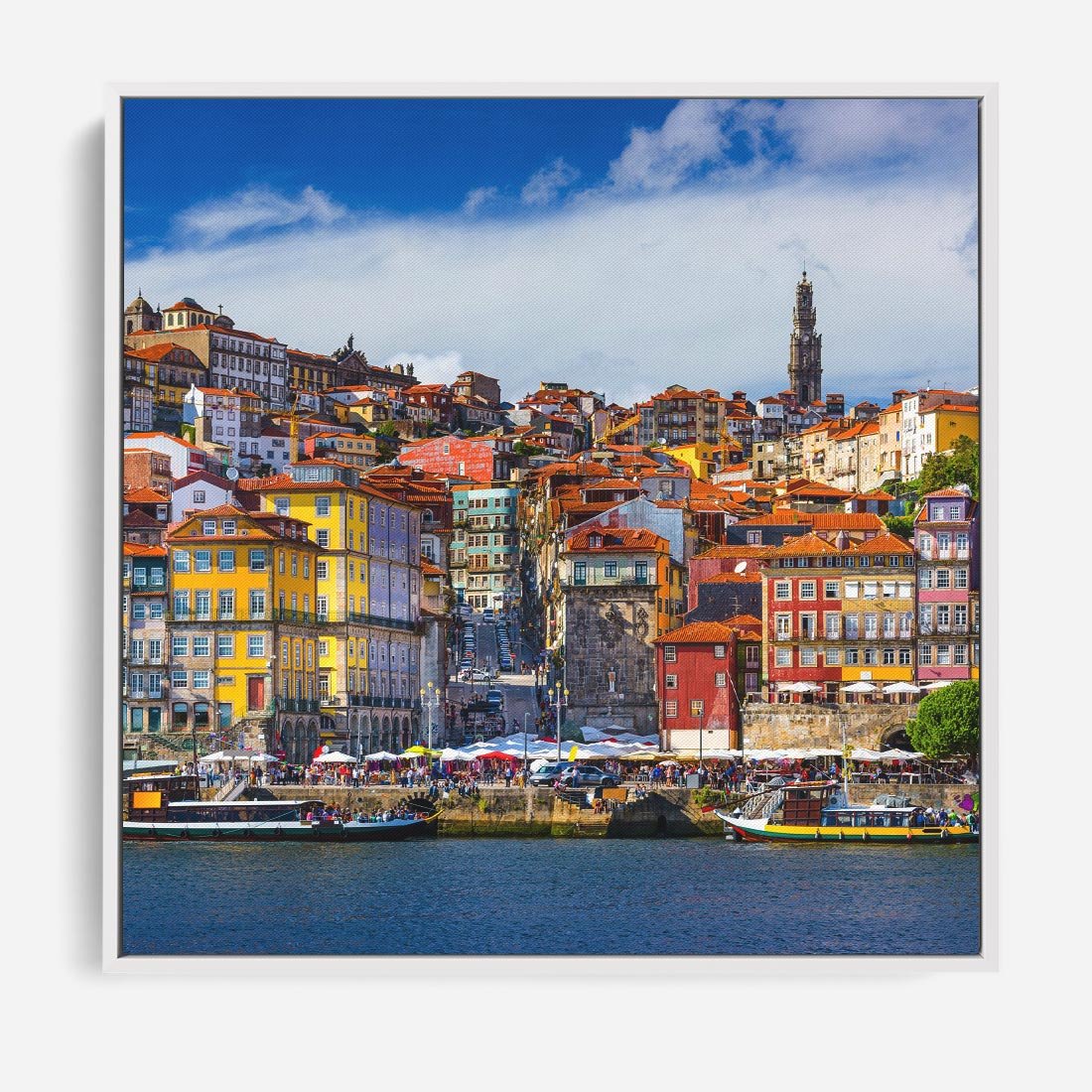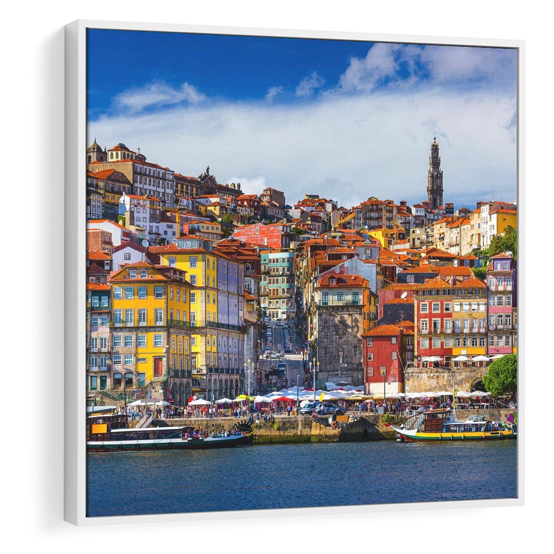 Obraz w ramie 80x80 - Kolorowa Przystań - nadmorskie miasto, kolorowe budynki - rama biała