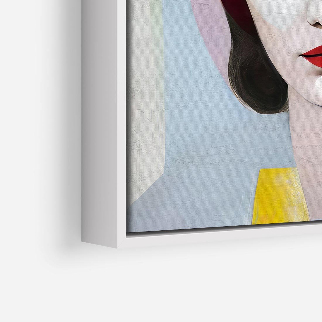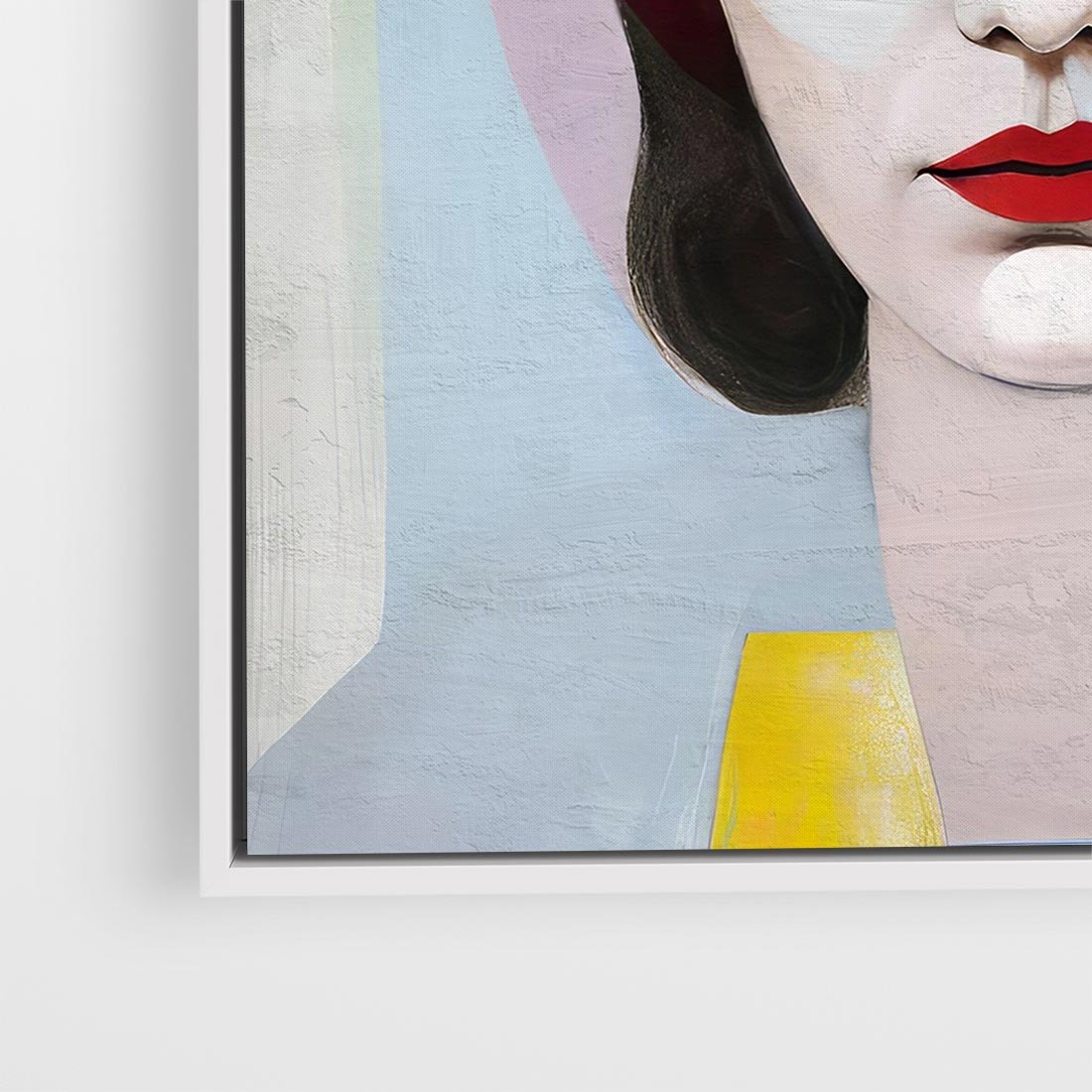 Obraz w ramie 80x80 - Kolorowe Granice Form - abstrakcyjny obraz olejny, portret twarzy kobiety - rama biała