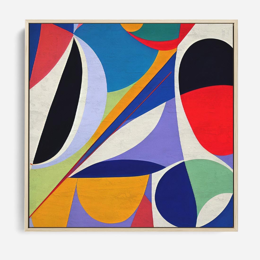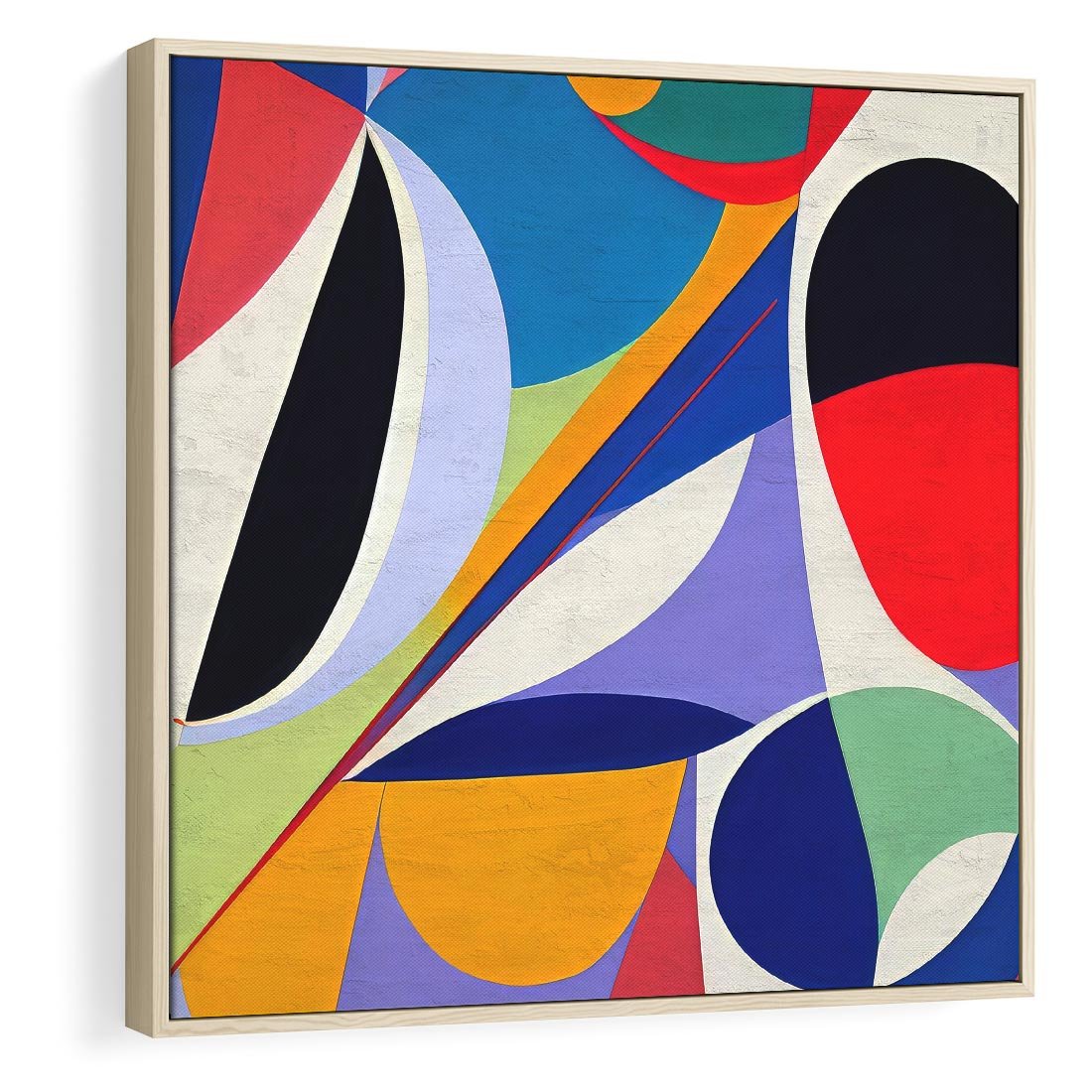 Obraz w ramie 80x80 - Kolorowe Przesunięcia Kształtów - abstrakcyjny obraz olejny, żywe kolory - rama drewno