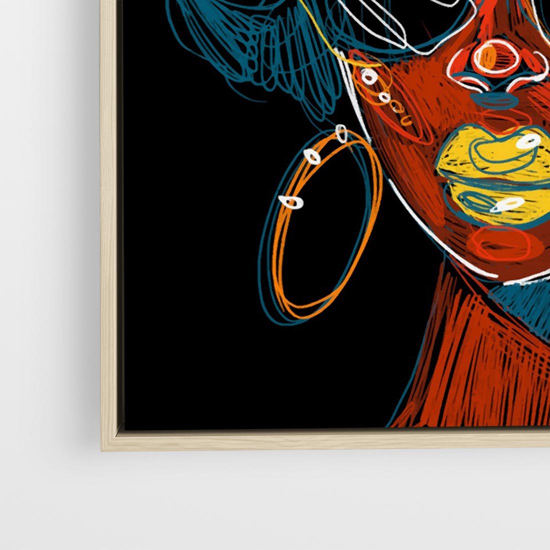Obraz w ramie 80x80 - Kolorowe Wibracje Rzeczywistości - abstrakcyjny portret kobiety, twarz - rama drewno