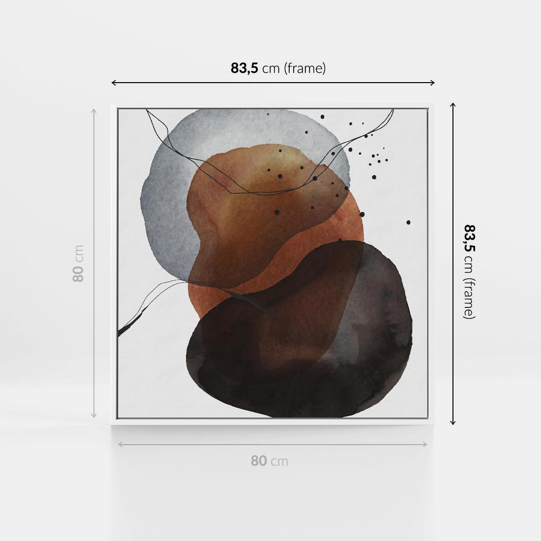 Obraz w ramie 80x80 - Kolorowe Wizje - abstrakcyjne plamy akwarelowe, czarny szkic - rama biała