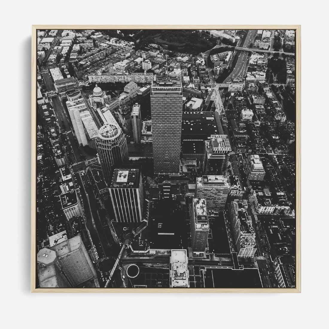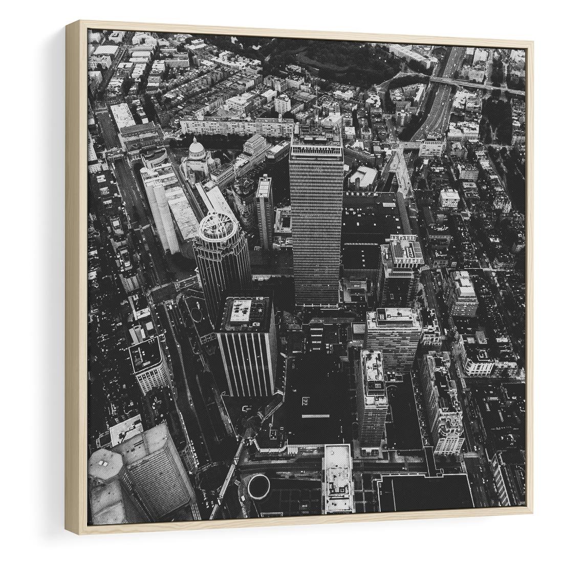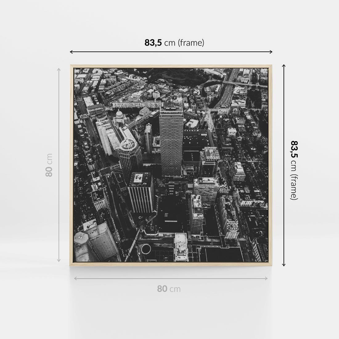Obraz w ramie 80x80 - Kontrastujące miasto - miasto, biało - rama drewno