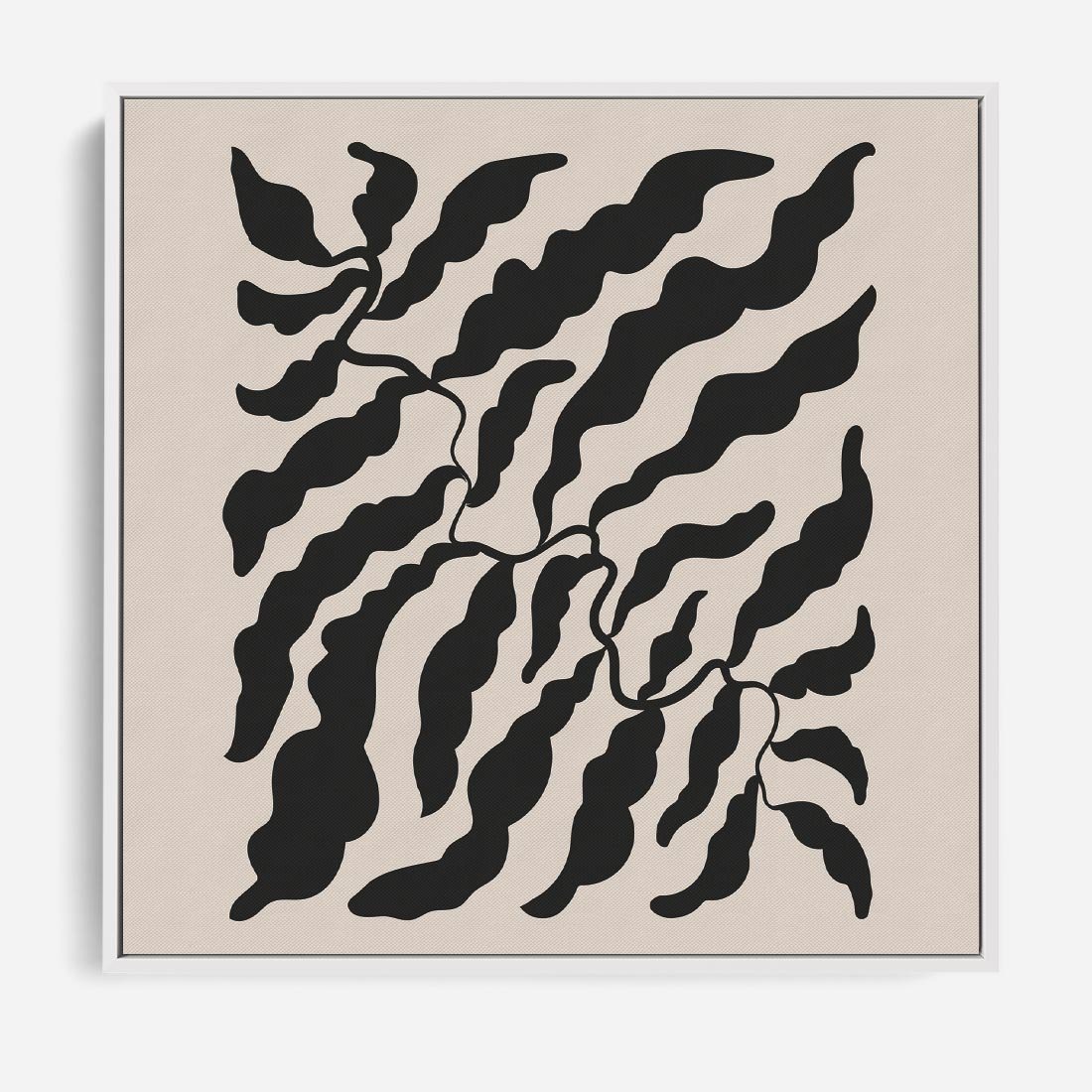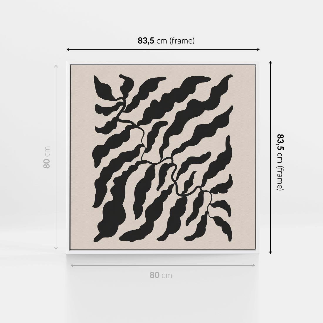 Obraz w ramie 80x80 - Księga Odbić - abstrakcyjne liśćie, roślinne motywy - rama biała