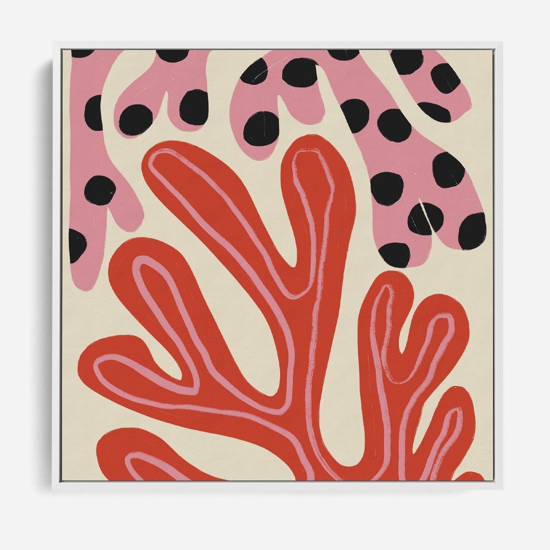 Ten abstrakcyjny obraz w formie plakatu fascynuje dziwnymi kształtami, które tworzą harmonię w odcieniach różowego i czerwonego. Jego wyjątkowość polega na zdolności zachęcania do refleksji, pobudzając wyobraźnię widza poprzez niekonwencjonalne kompozycje i intensywne barwy.