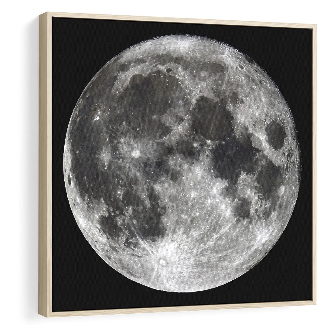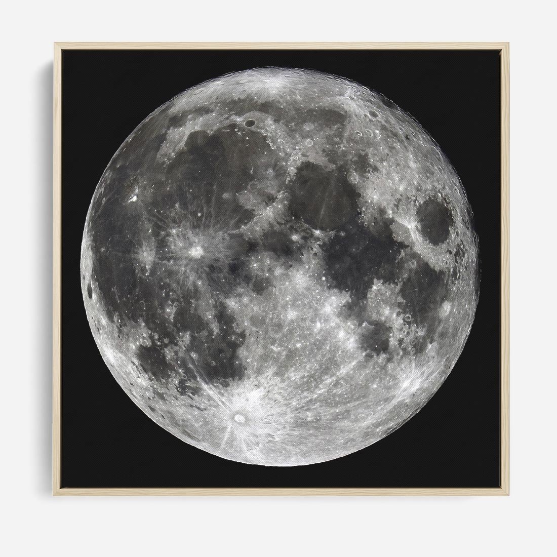 Obraz w ramie 80x80 - Księżycowa Aura - zdjęcie, ogromny księżyc na czarnym tle - rama drewno