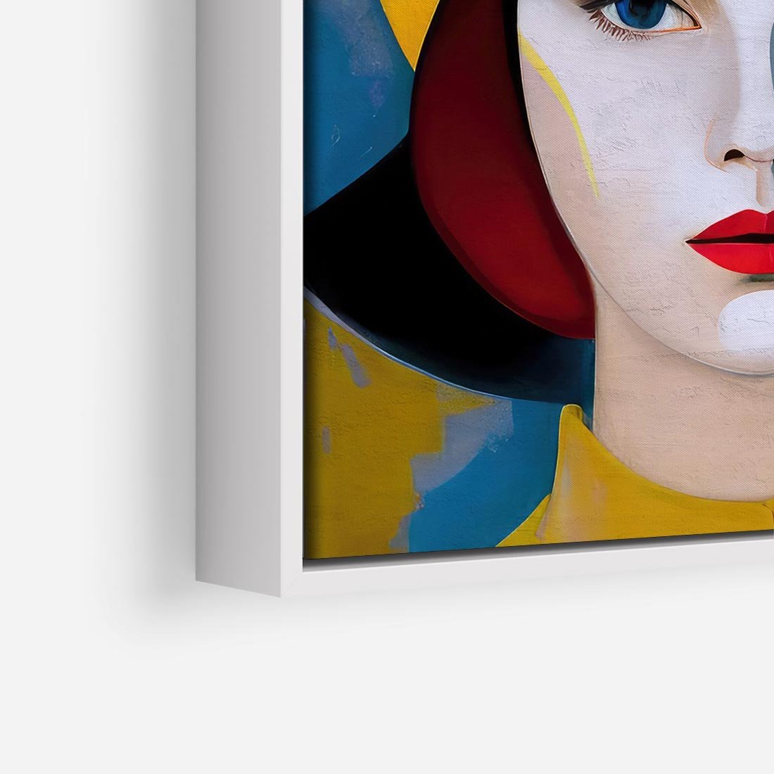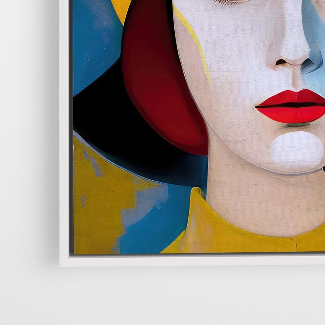 Obraz w ramie 80x80 - Kształtujące Widzenia - abstrakcyjny obraz olejny, portret twarzy kobiety - rama biała