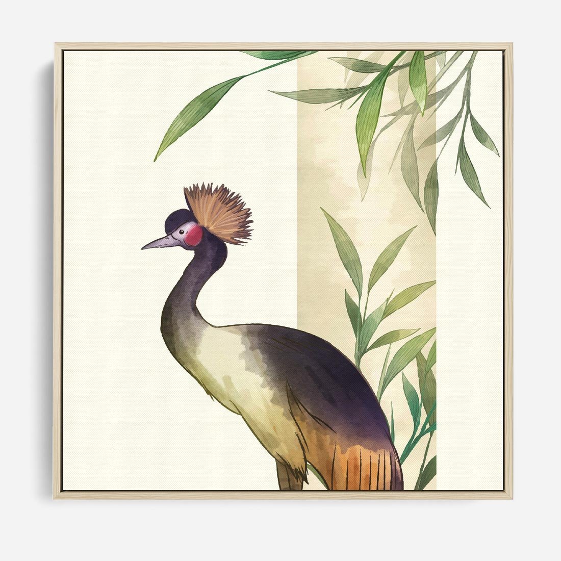Obraz w ramie 80x80 - Kwiatowa Ekspresja - japońska sztuka, ptak - rama drewno