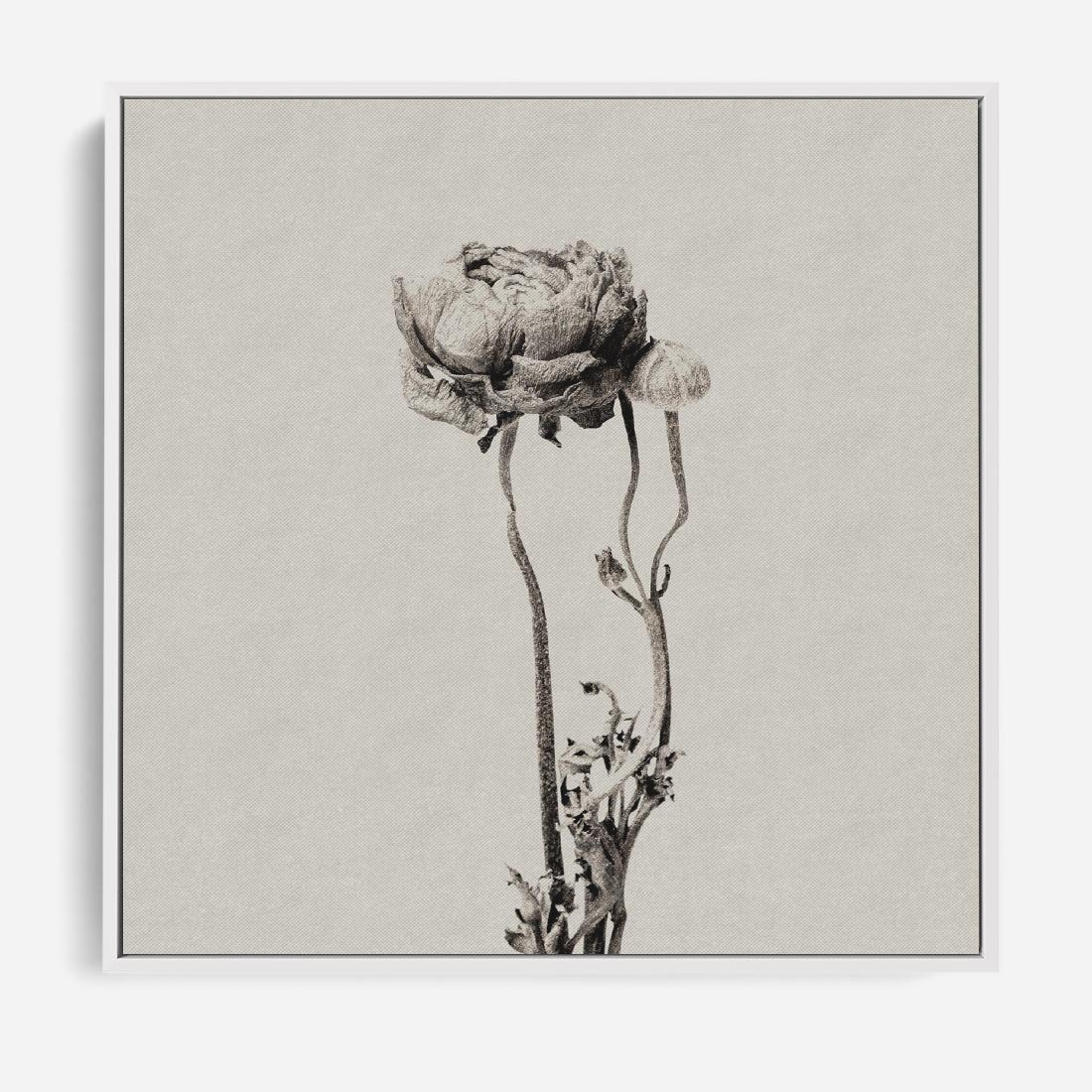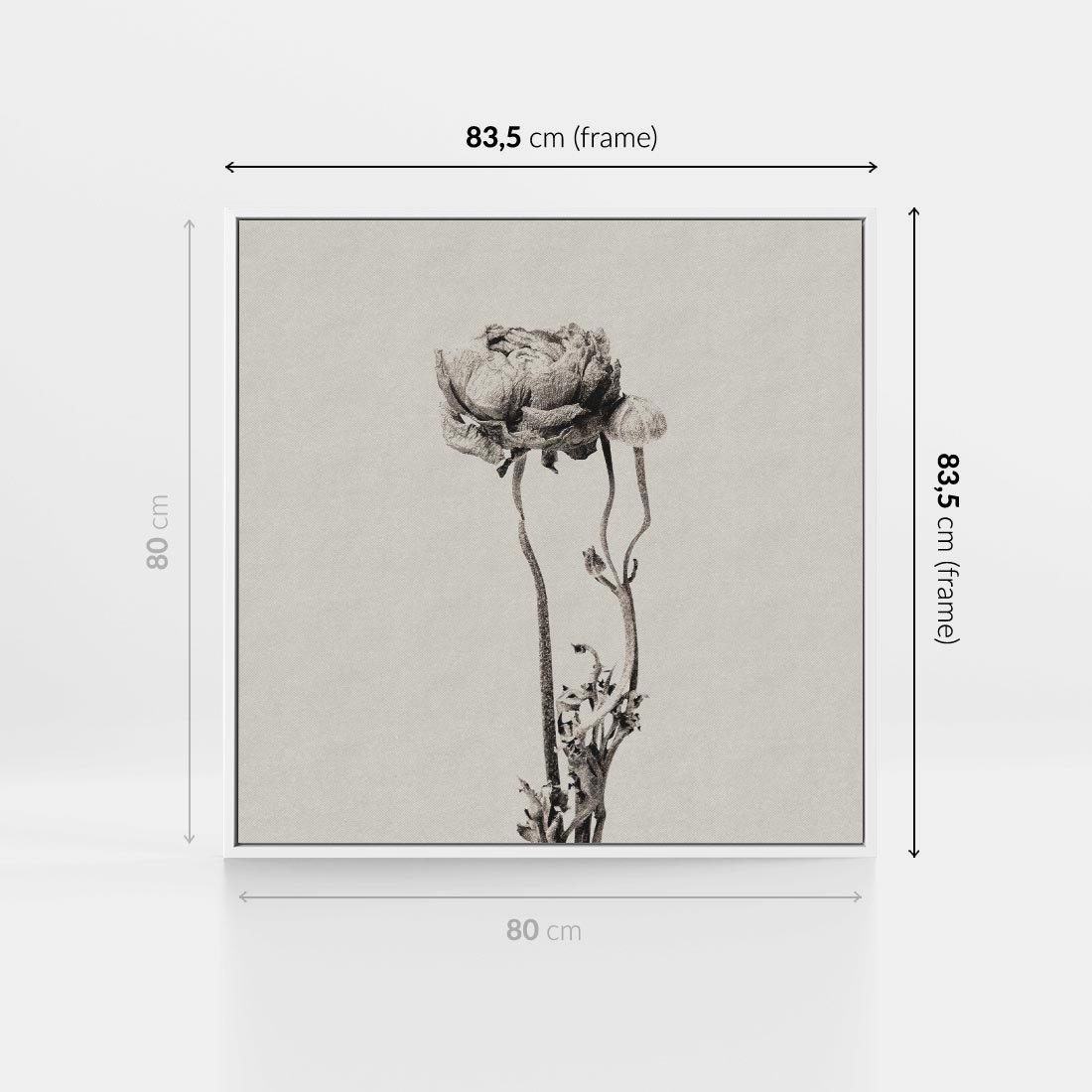 Obraz w ramie 80x80 - Kwiatowa Symfonia w Szarościach - czarno biała odbitka, jak fotografia - rama biała