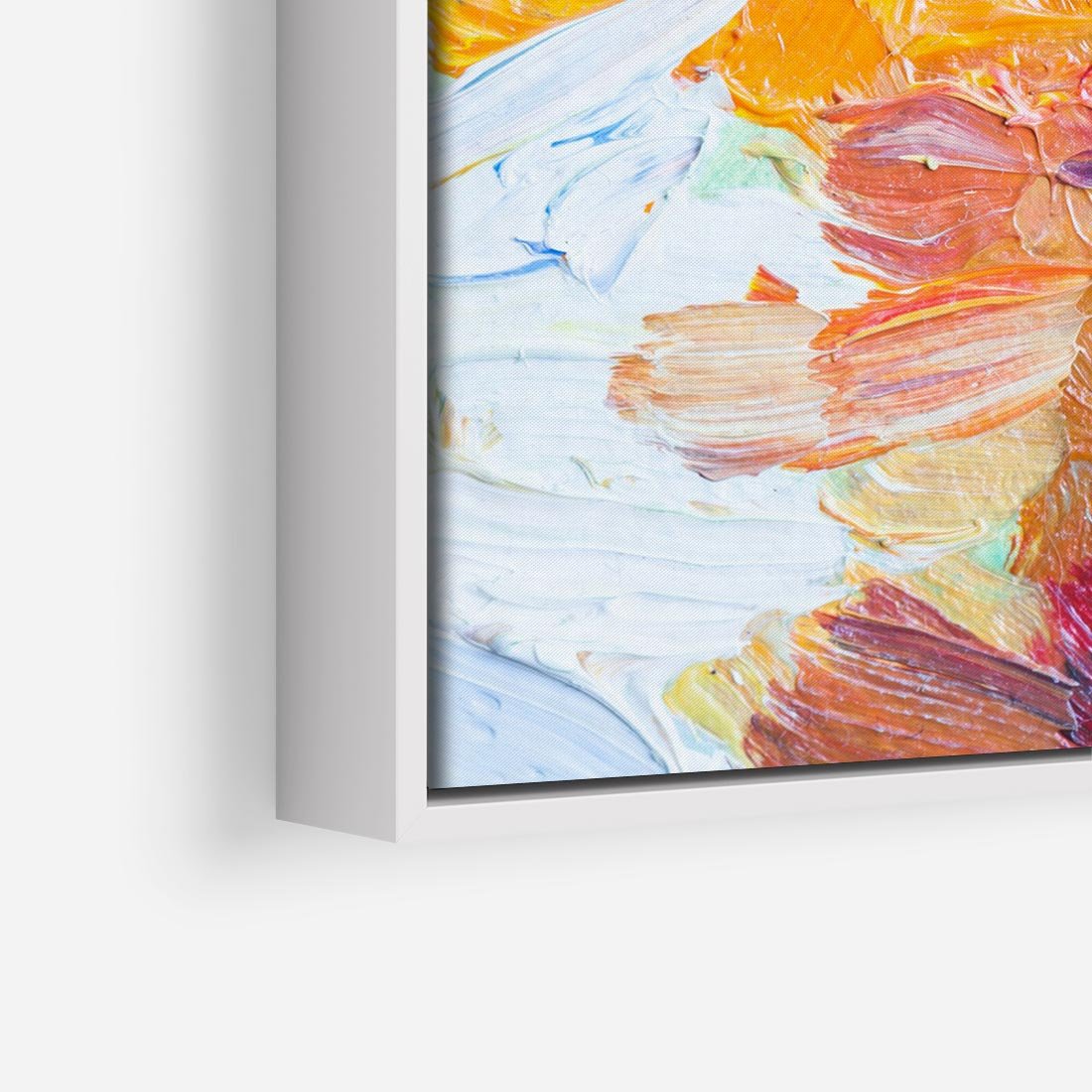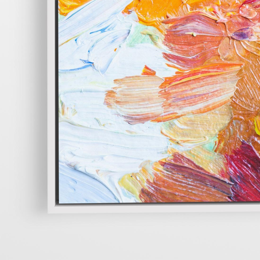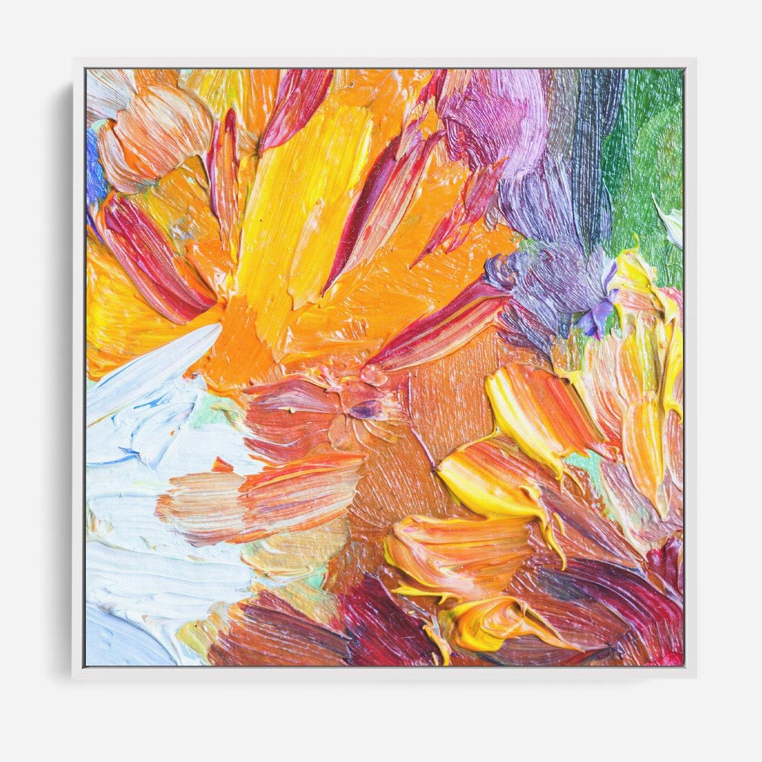 Obraz w ramie 80x80 - Kwiatowe Harmonie - zbliżenie na obraz olejny, gruba warstwa farby - rama biała