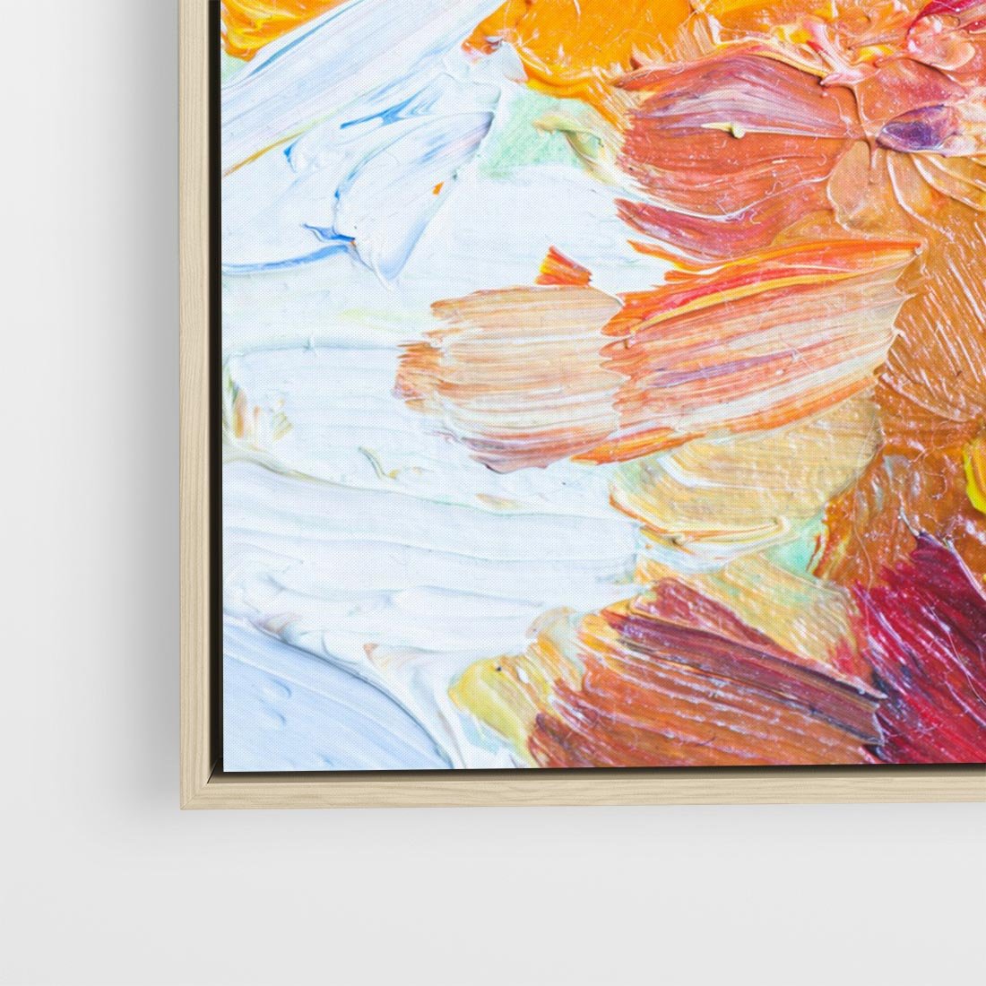 Obraz w ramie 80x80 - Kwiatowe Harmonie - zbliżenie na obraz olejny, gruba warstwa farby - rama drewno