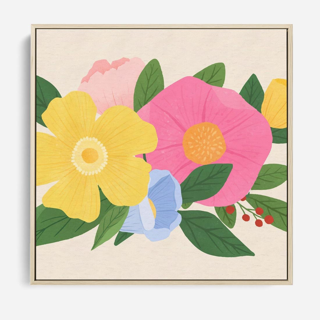 Obraz w ramie 80x80 - Kwiatowy Uśmiech - kwiaty, akwarela - rama drewno