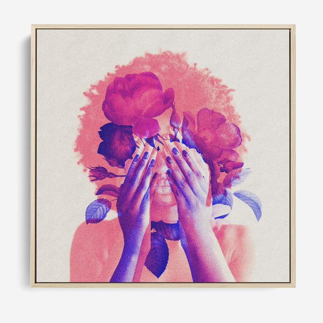 Obraz w ramie 80x80 - Kwiaty we Włosach - różowa postać, grafika - rama drewno