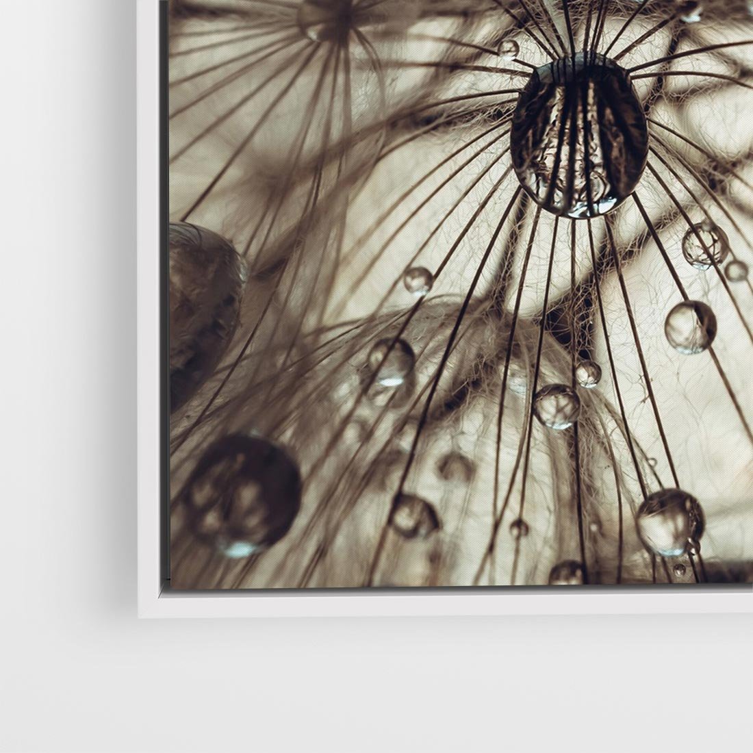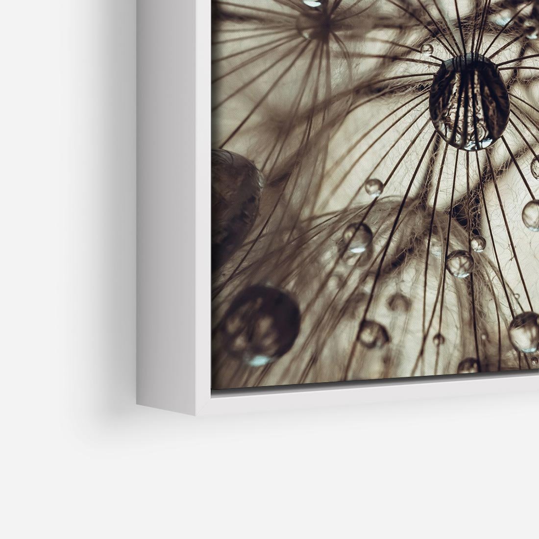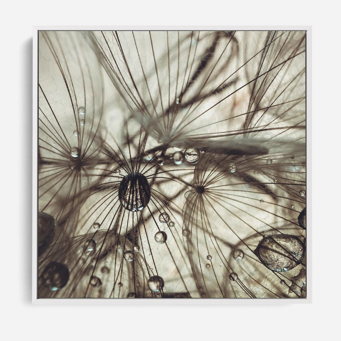 Obraz w ramie 80x80 - Lekkie dmuchawce - dmuchawce, krople - rama biała