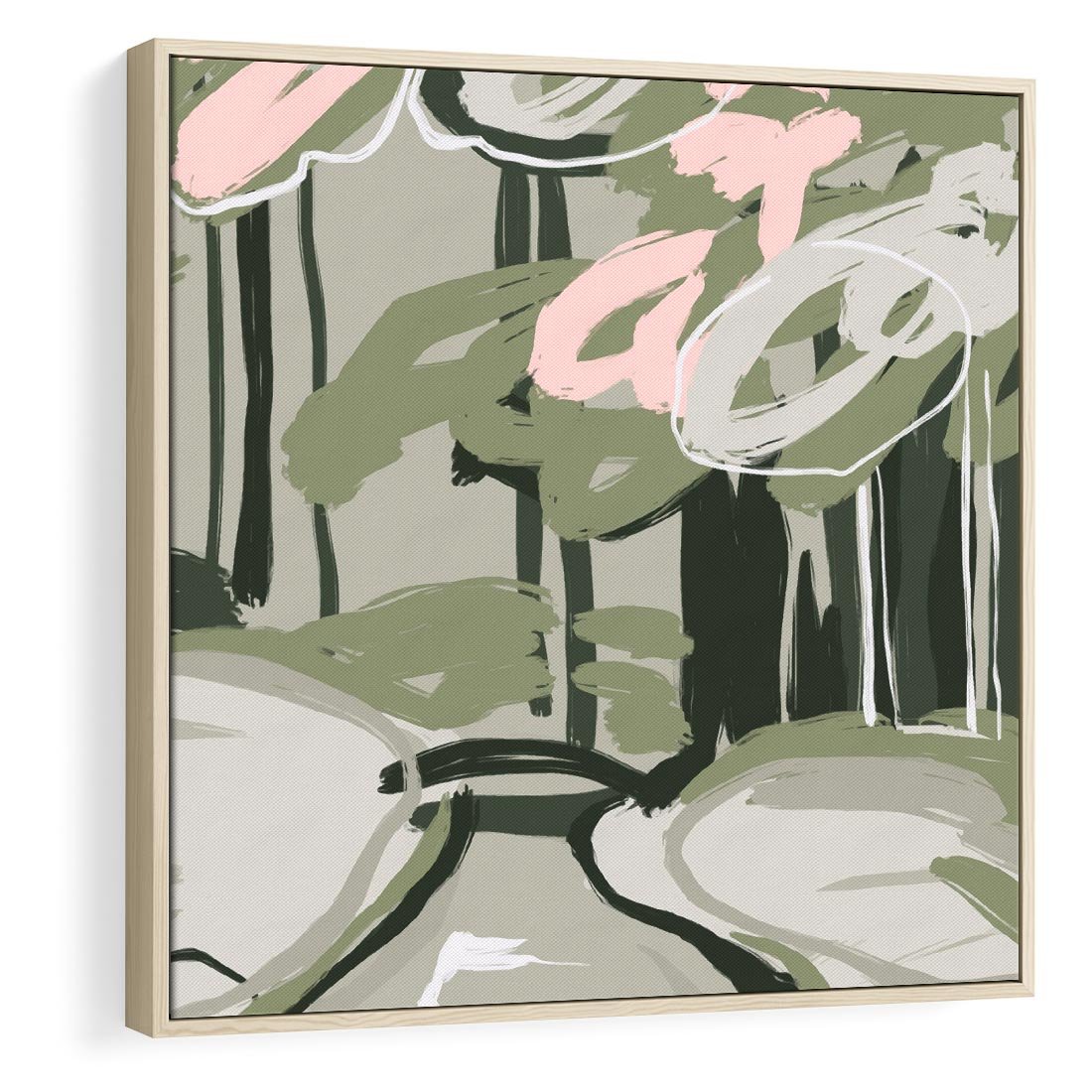 Obraz w ramie 80x80 - Leśny Zakątek - pastelowy krajobraz, nowoczesny plakat - rama drewno