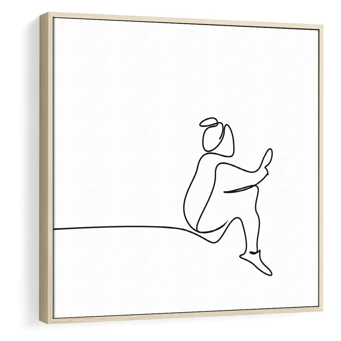 Obraz w ramie 80x80 - Linie Wewnętrznej Refleksji - line art, szkic - rama drewno