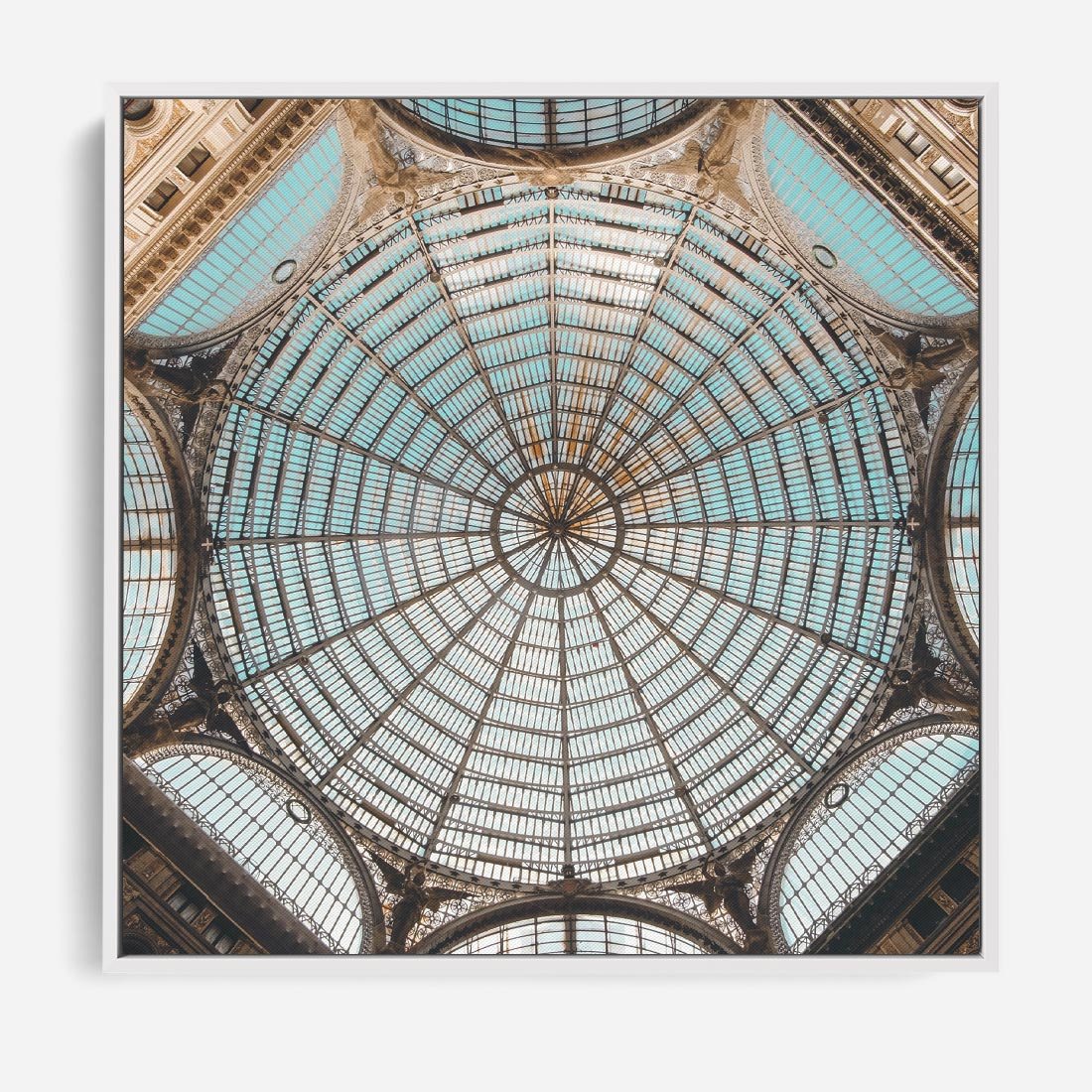 Obraz w ramie 80x80 - Magia Sklepienia - sklepienie, szklany dach - rama biała