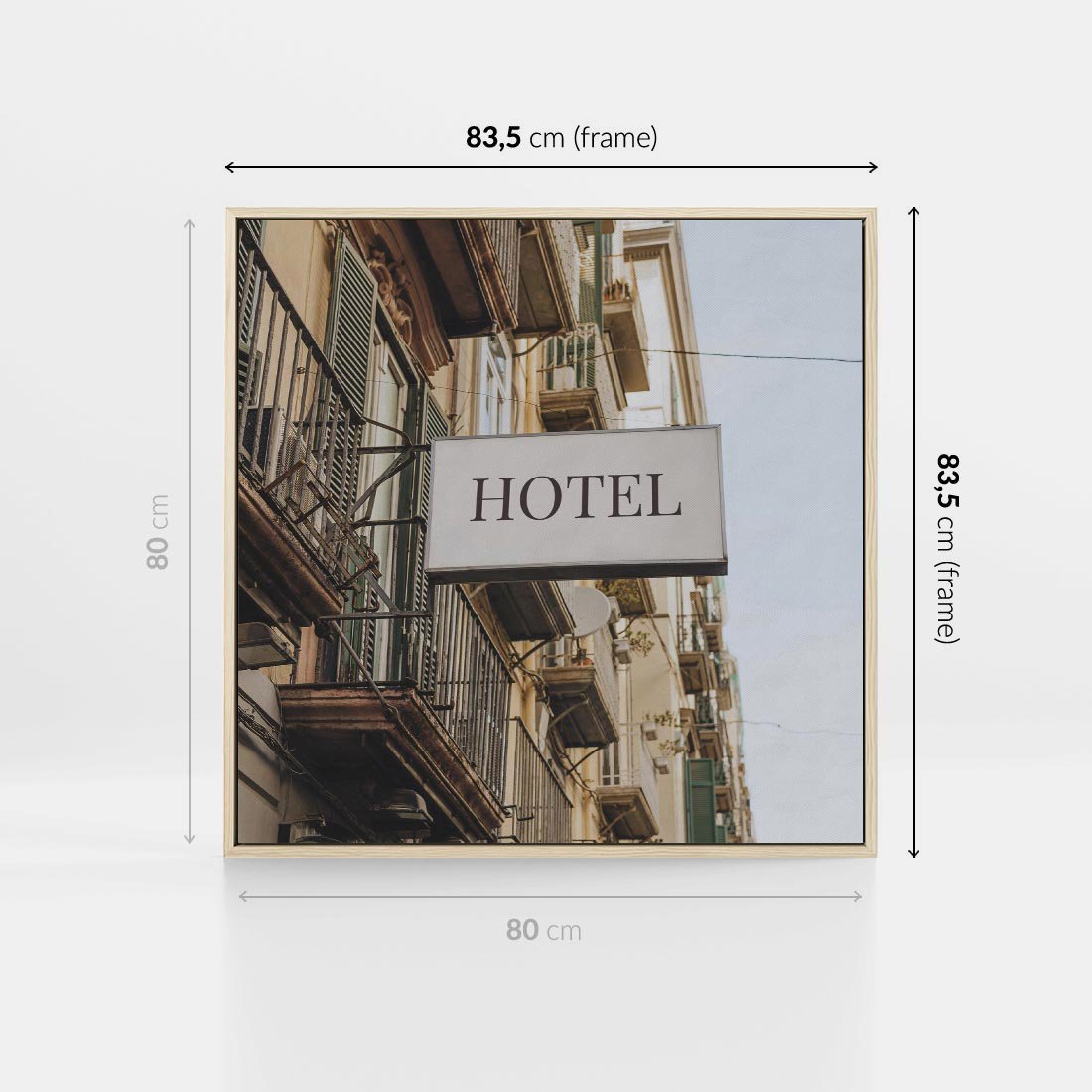 Obraz w ramie 80x80 - Magiczne Spacery - hotel, uliczka - rama drewno