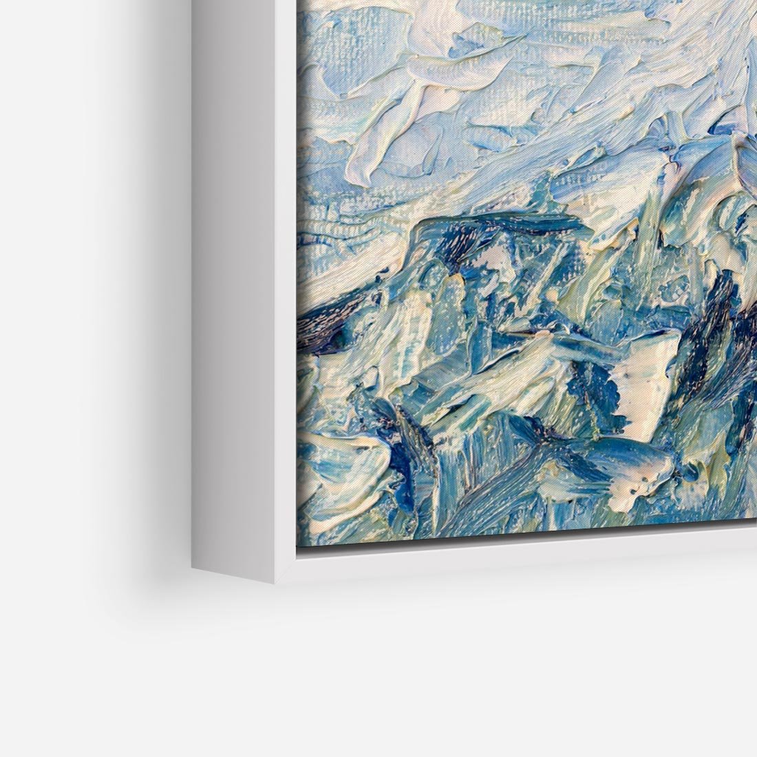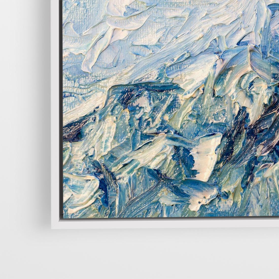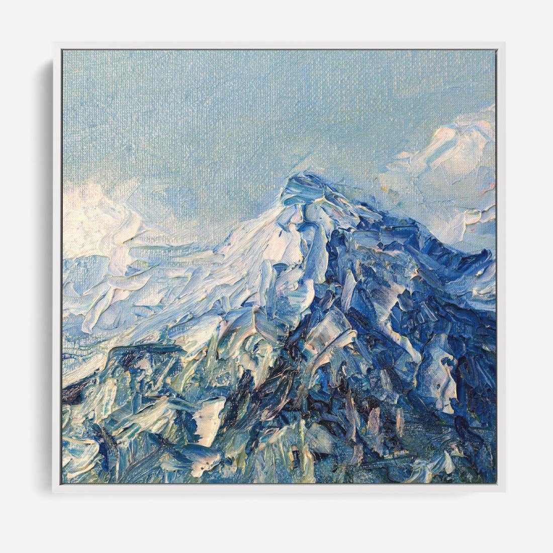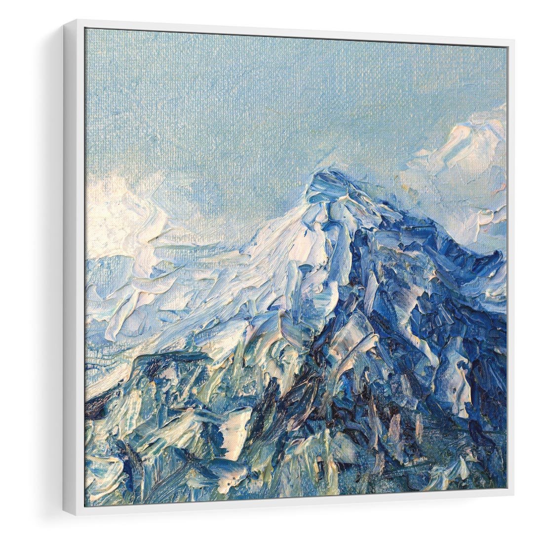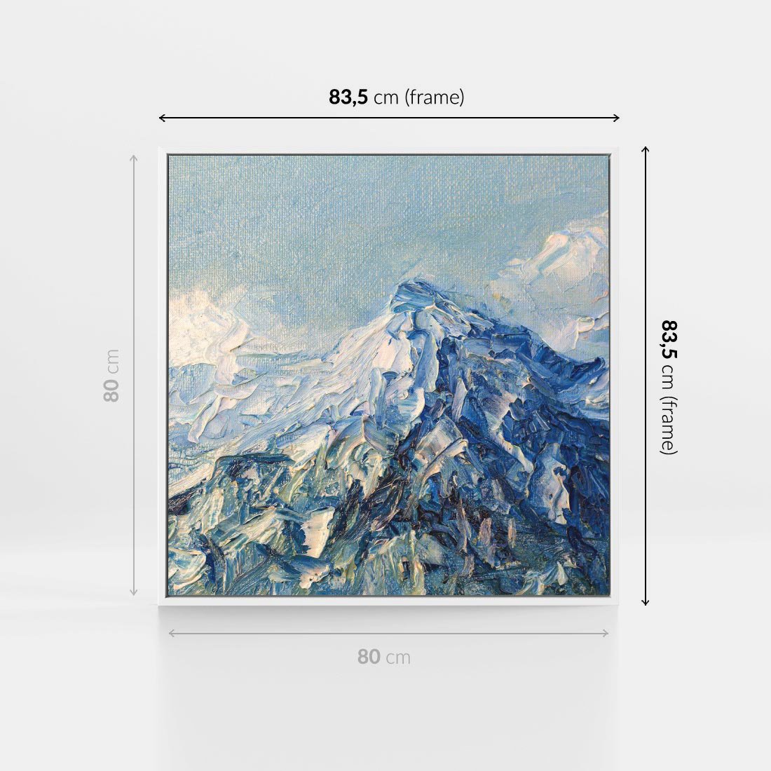 Obraz w ramie 80x80 - Majestat Błękitnych Szczytów - olejny obraz, górski pejzaż - rama biała