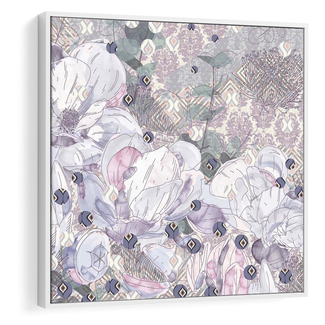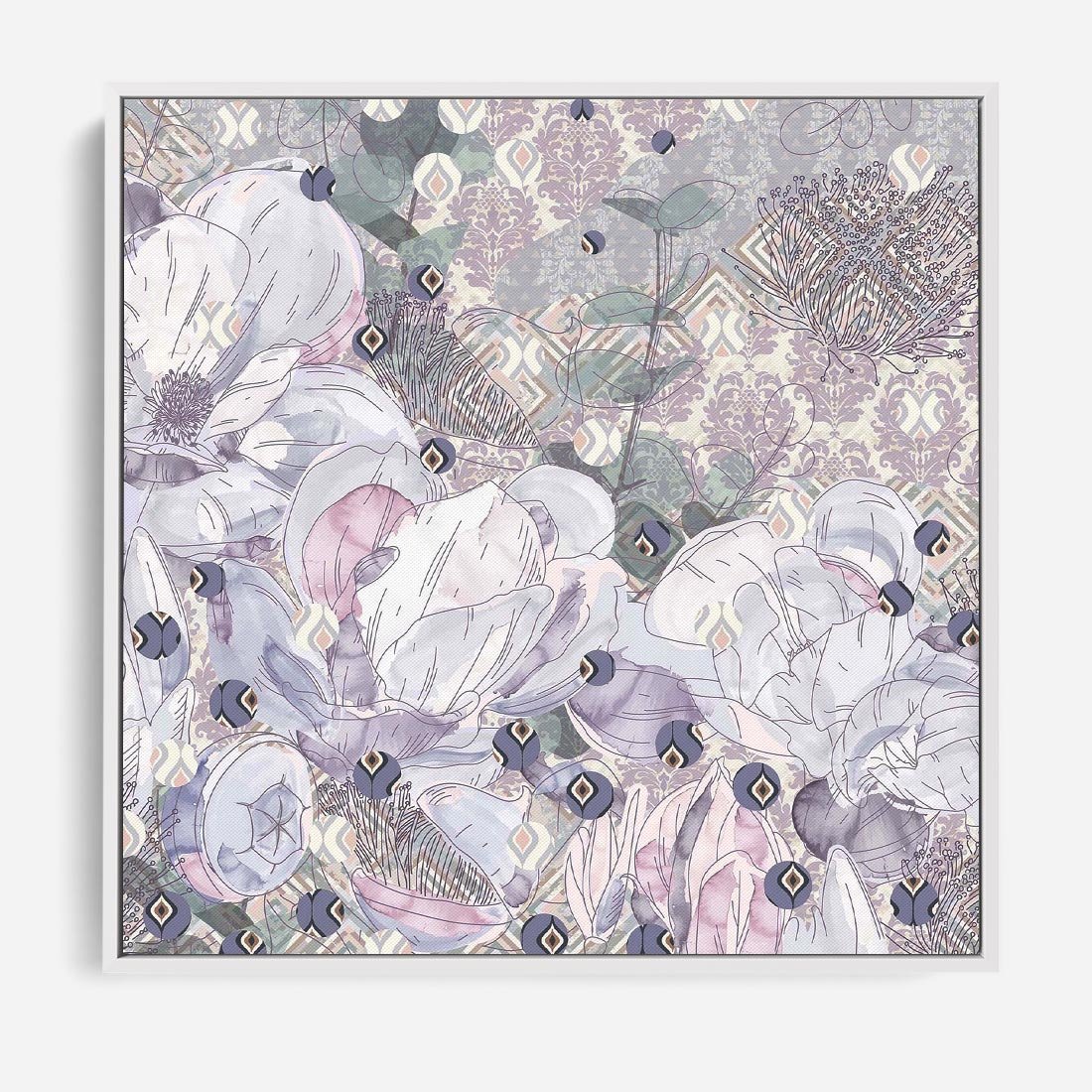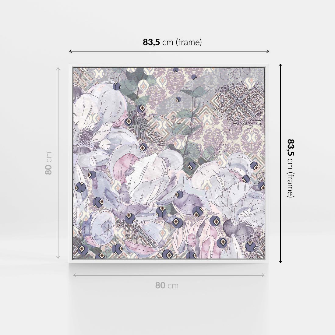 Obraz w ramie 80x80 - Malowane oddechy istnienia - pomieszane tekstury, kwiatowe elementy - rama biała