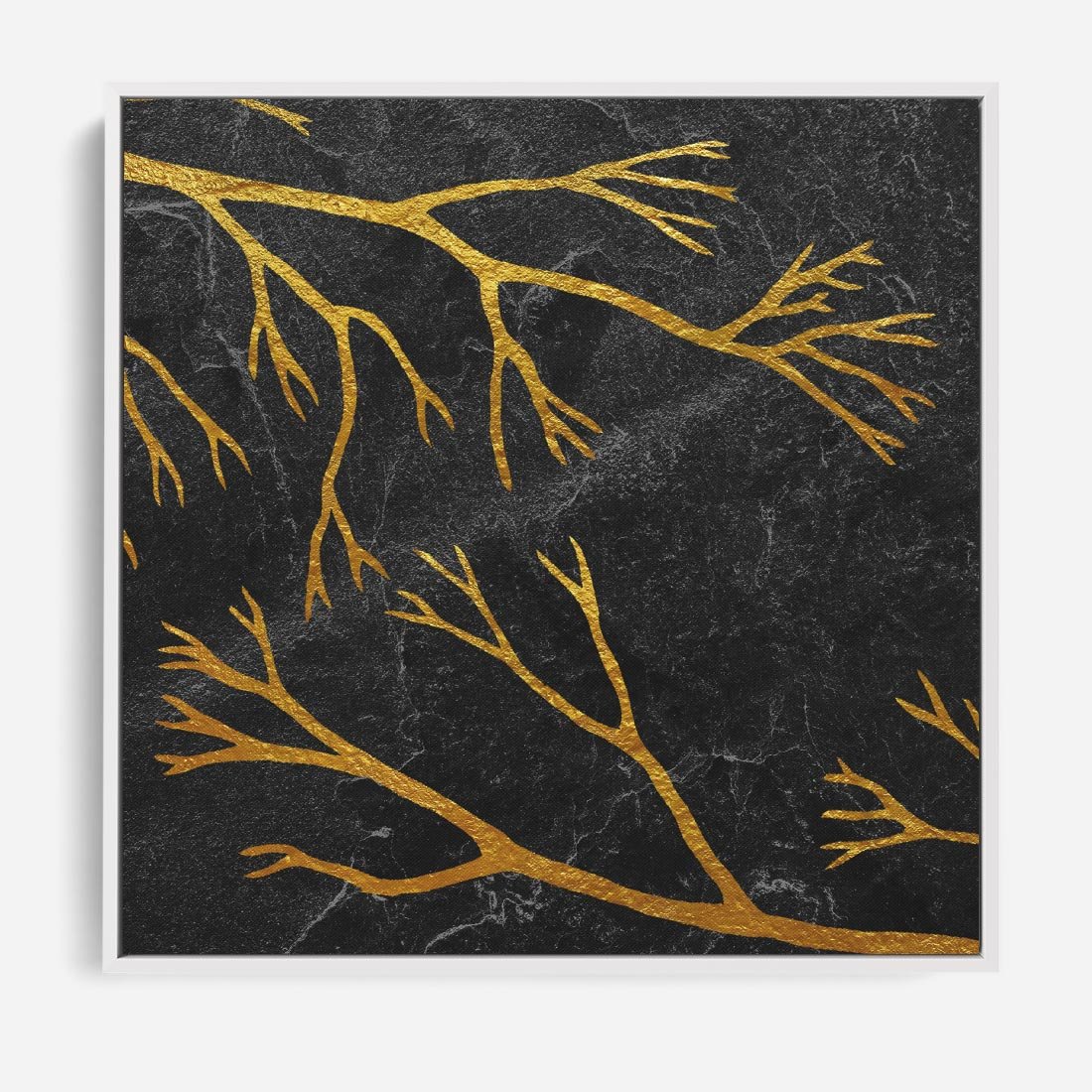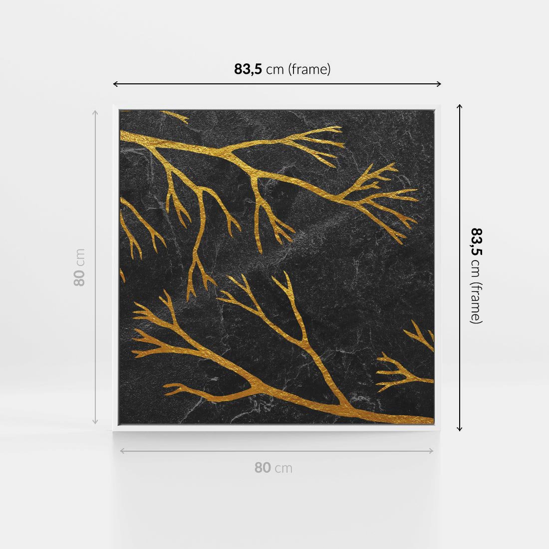 Obraz w ramie 80x80 - Marmurowe Drzewa Snu - złote gałęzie, drzewa - rama biała