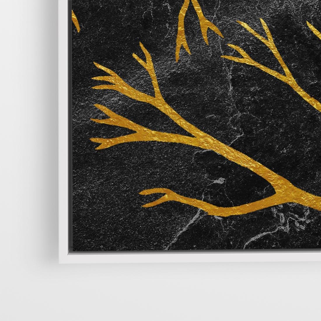 Ten metaforyczny obraz przedstawia złote gałęzie drzew na czarnym marmurowym tle, emanujący elegancją i tajemniczym urokiem. Minimalistyczny design podkreśla wyrafinowany charakter kompozycji. To dzieło sztuki przenosi widza w niezwykłą przestrzeń, gdzie złoto symbolizuje światło i nadzieję w ciemnościach. Idealny dodatek do wnętrz, które pragną zachować wyjątkowy i niezwykły wystrój.