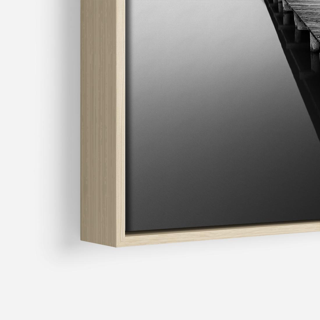 To czarno-białe zdjęcie ukazuje mistyczną scenerię drewnianego pomostu na jeziorze, otoczonego gęstą mgłą. Perspektywa podkreśla długą ścieżkę prowadzącą ku horyzontowi, tworząc niezwykle efektowny widok. Zdjęcie emanuje spokojem i tajemniczością, zapraszając widza do odkrywania uroku natury w mglistym otoczeniu.