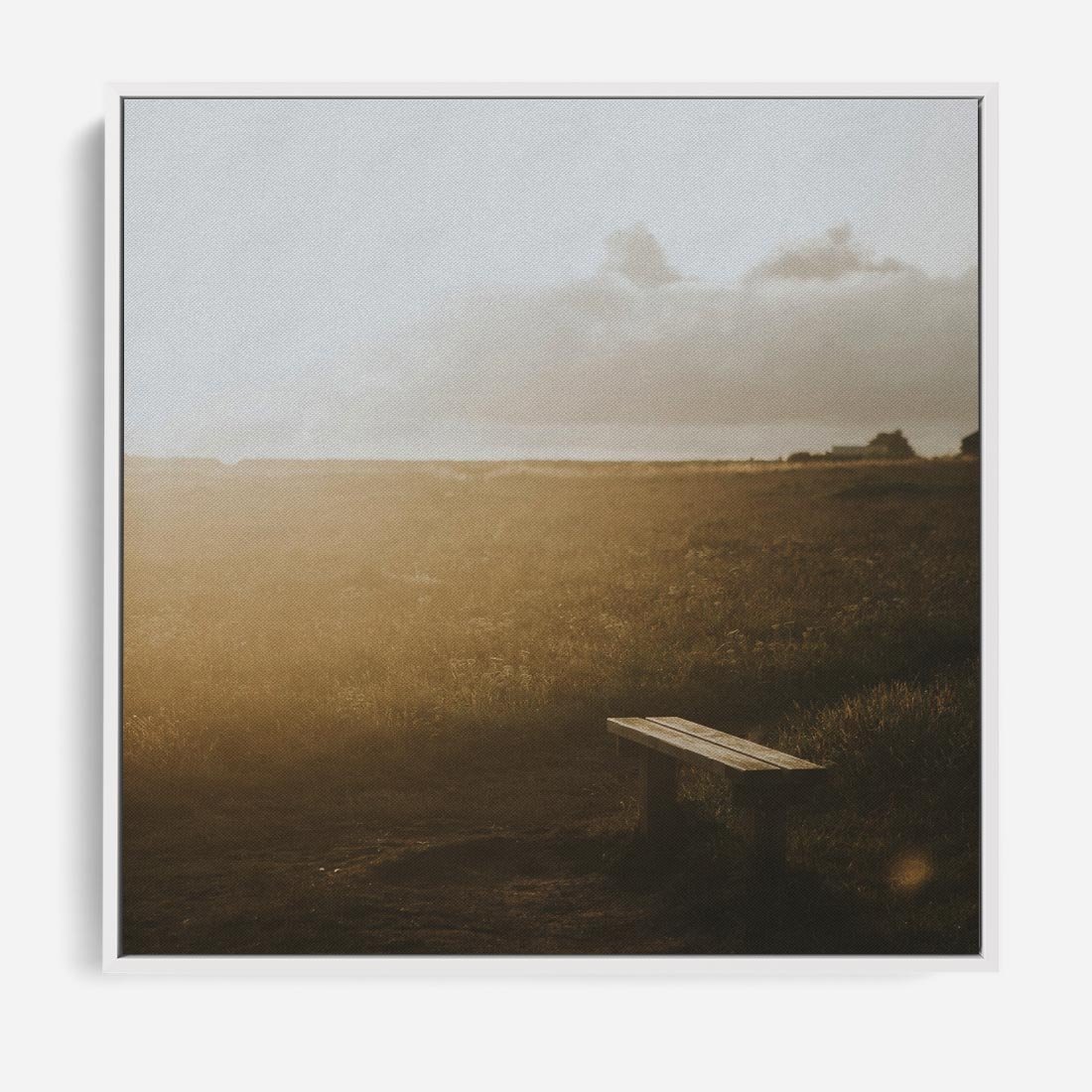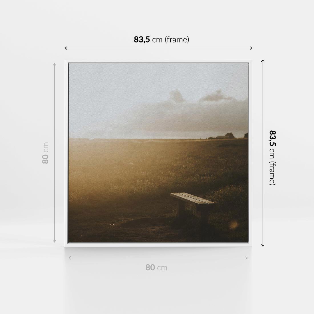 - Obraz w ramie 80x80 - Mglisty zachód słońca na ławeczce