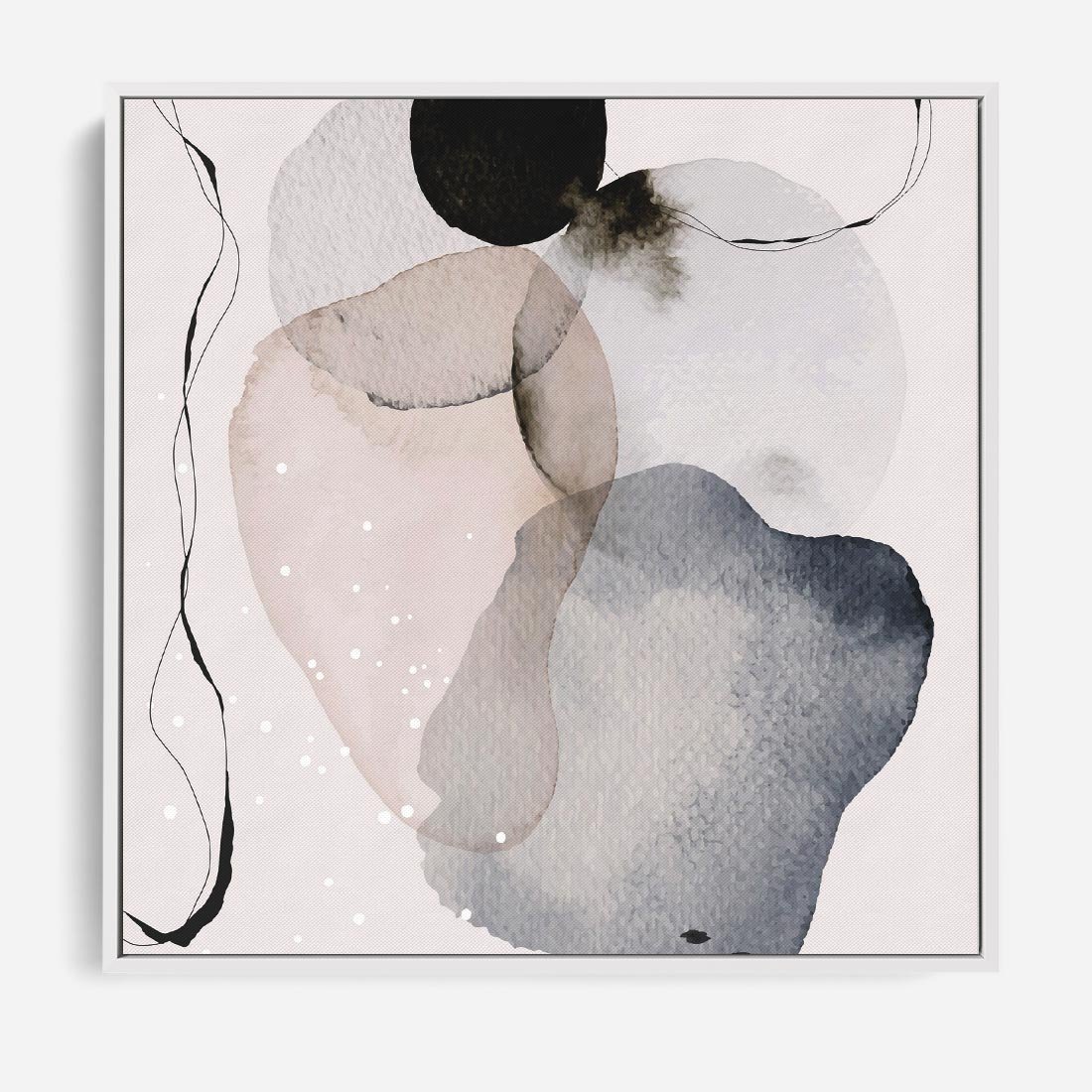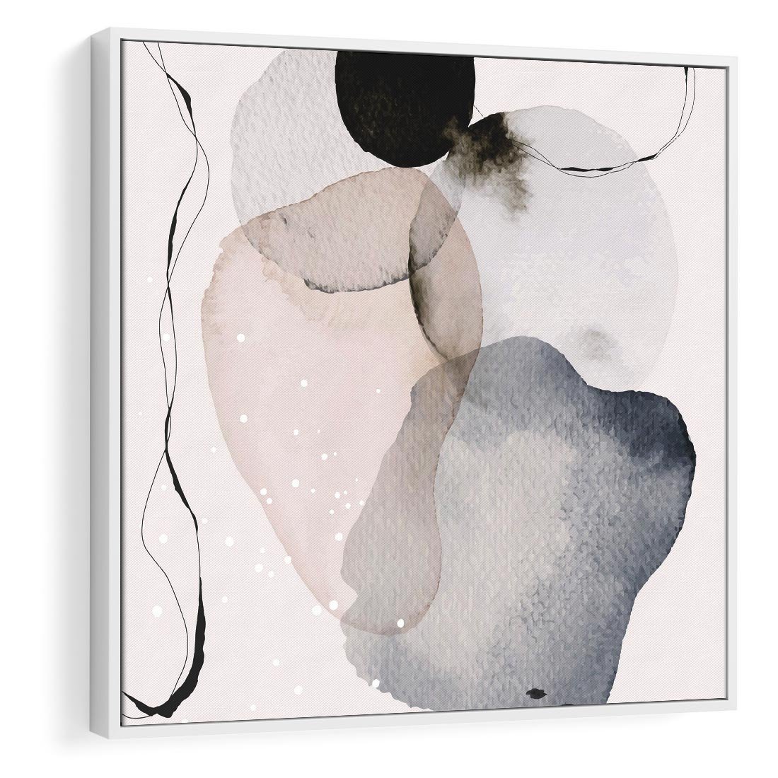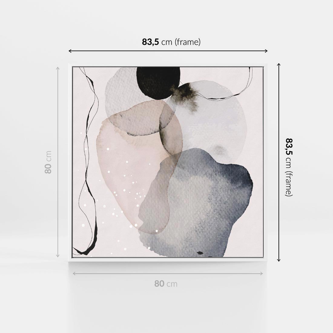 Obraz w ramie 80x80 - Migocące Barwy - abstrakcyjne plamy akwarelowe, czarny szkic - rama biała