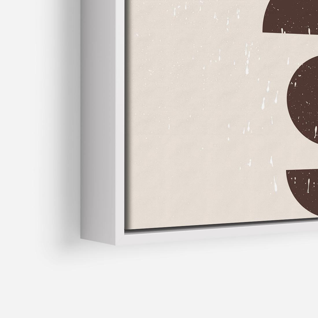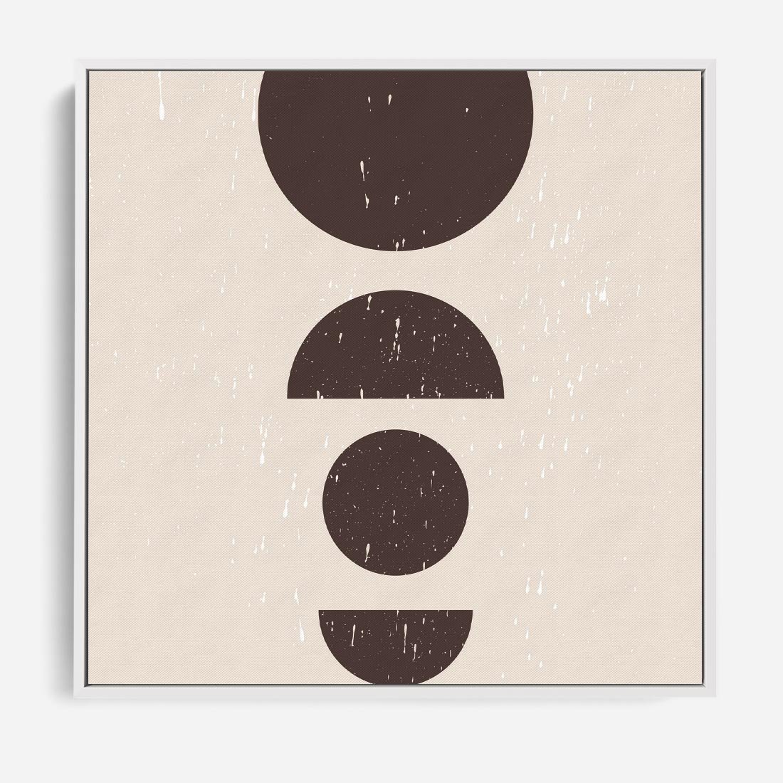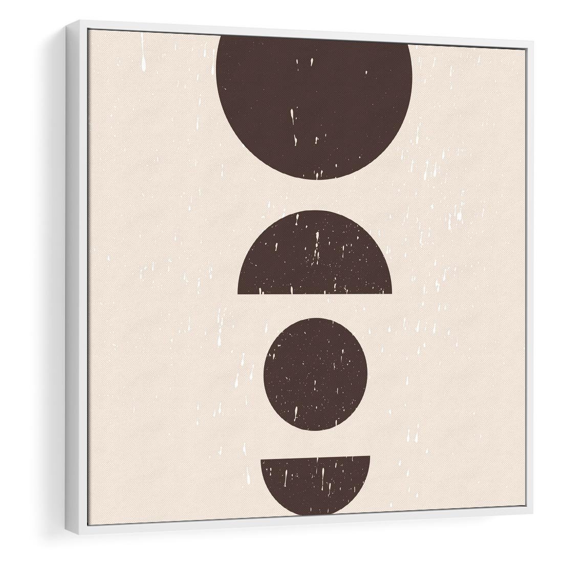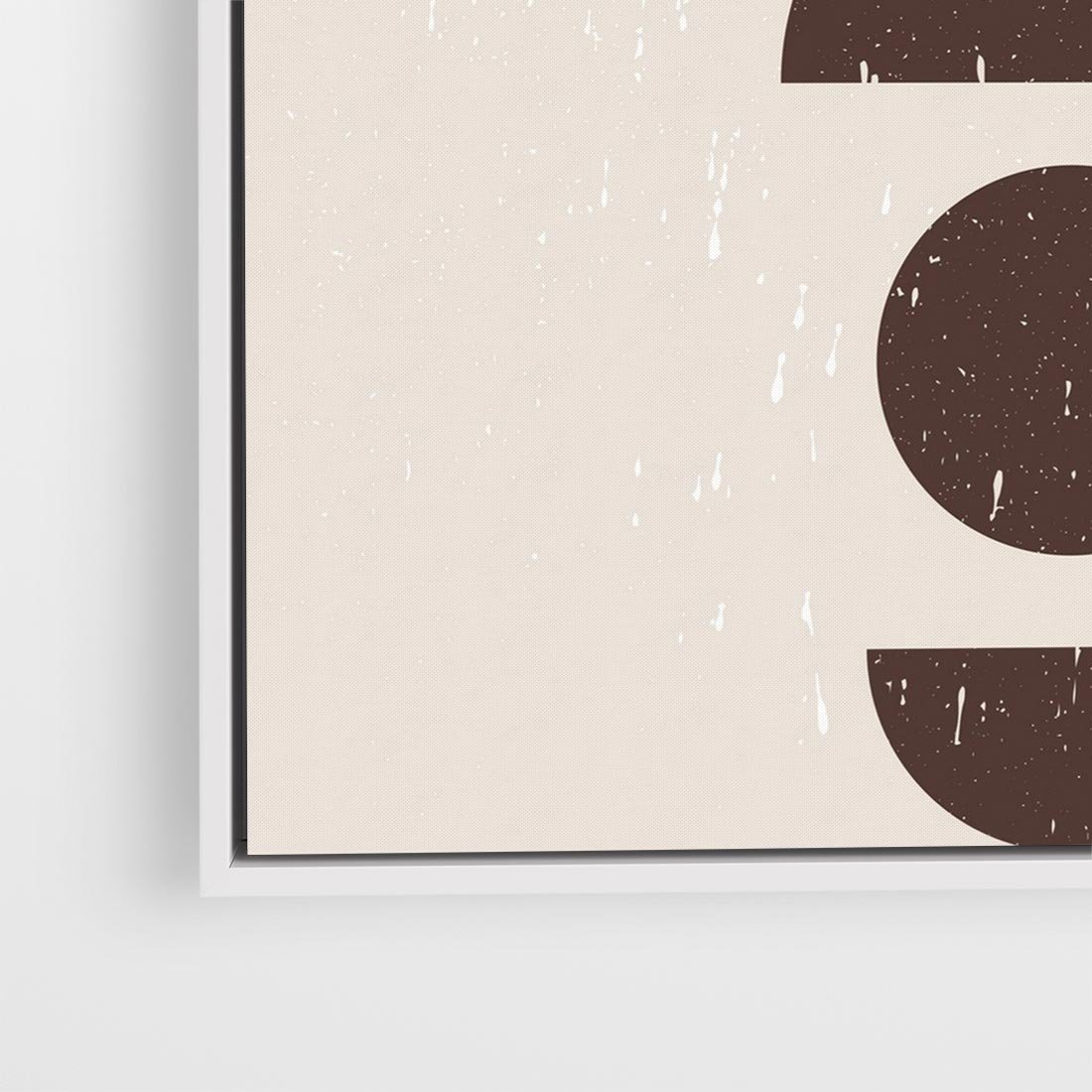 Ta nowoczesna grafika w stylu mid century prezentuje brązowe koła i półkola w minimalistycznym ujęciu, tworząc unikalny design o subtelnym wyrazie.