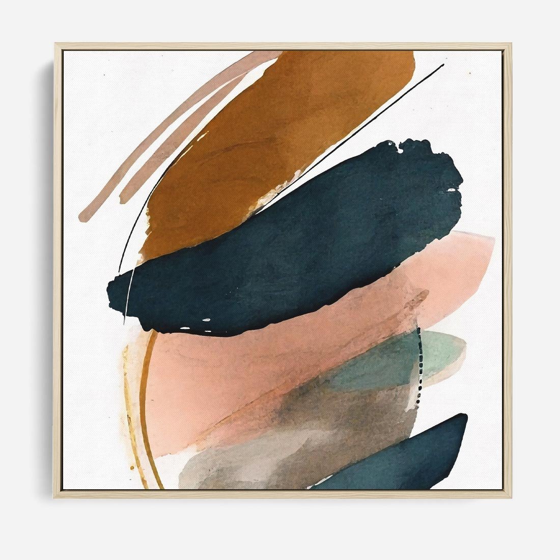 Obraz w ramie 80x80 - Migocące Impresje Przestrzeni - abstrakcyjny obraz, kolory ciepłe - rama drewno