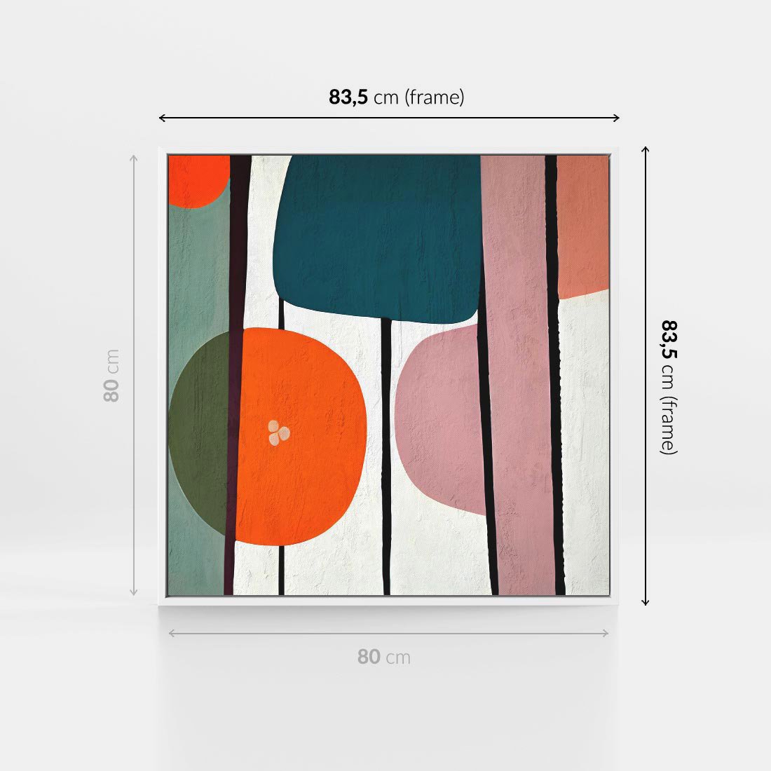 Obraz w ramie 80x80 - Migotliwa Aura Serca - abstrakcyjny obraz olejny, dziwne formy - rama biała