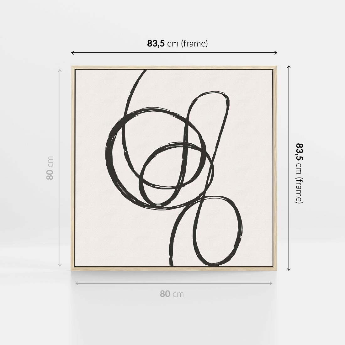 Obraz w ramie 80x80 - Migotliwa Kreatywność - abstrakcyjne szkicowane linie, minimalizm - rama drewno
